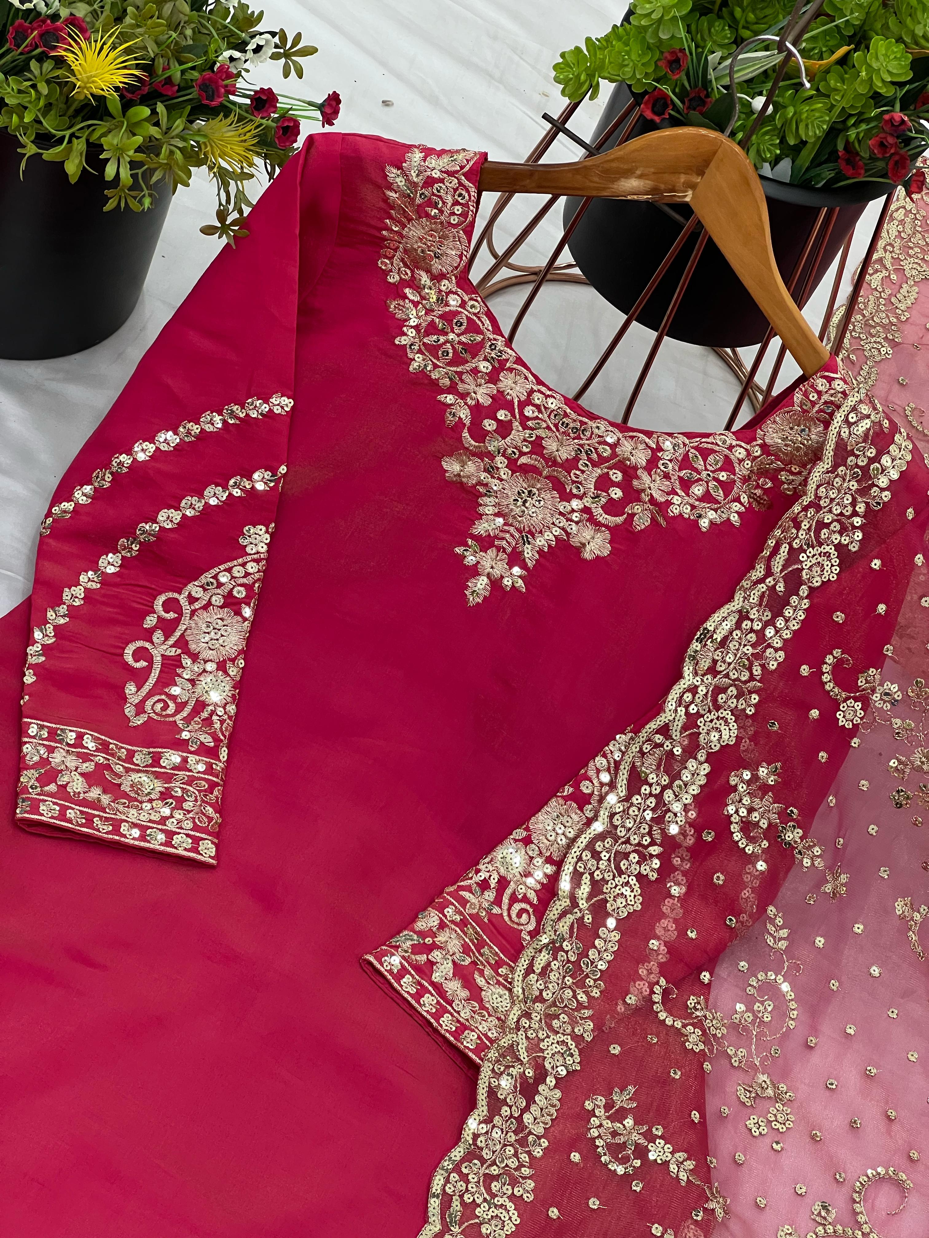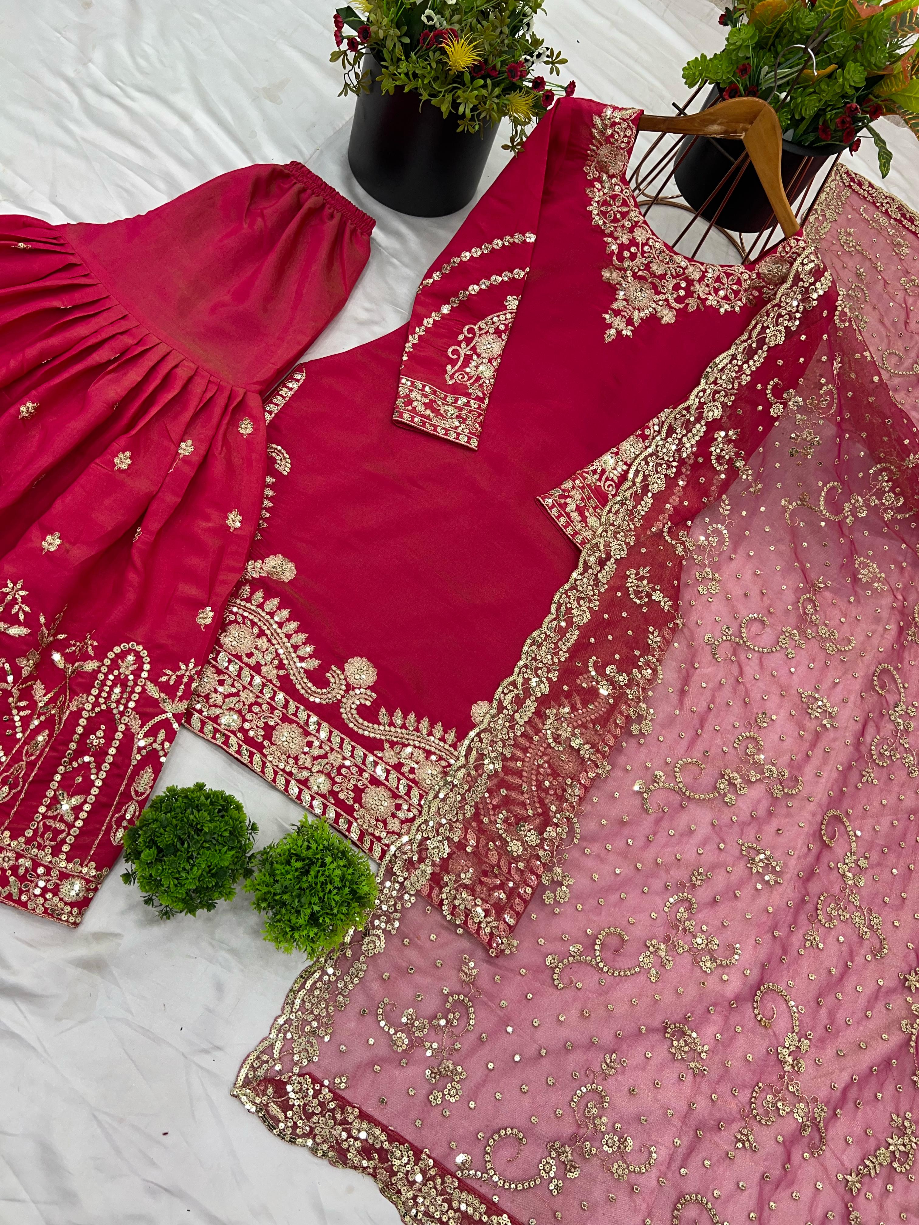 Occasion Wear Simmer Silk Pink Color Sharara Suit