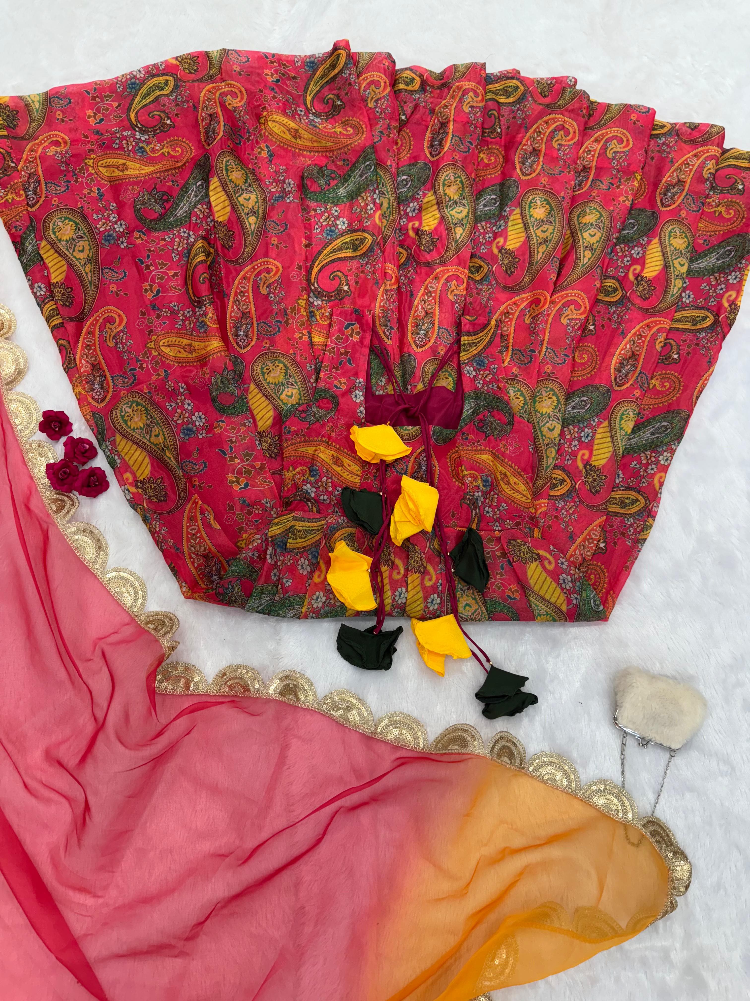 Organza Silk Pink Color Huge Flaired Designer Gown