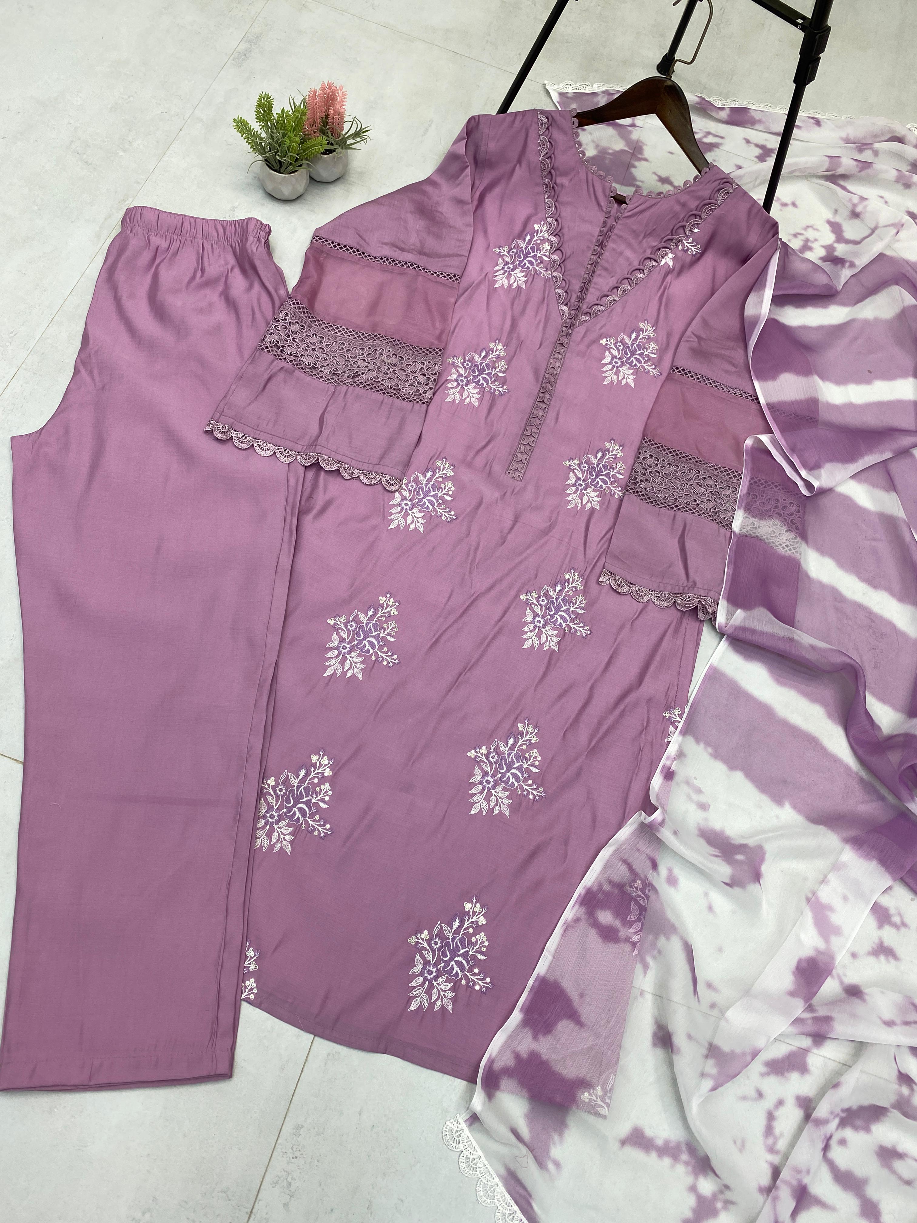Outstanding Roman Silk Lavender Color Salwar Suit