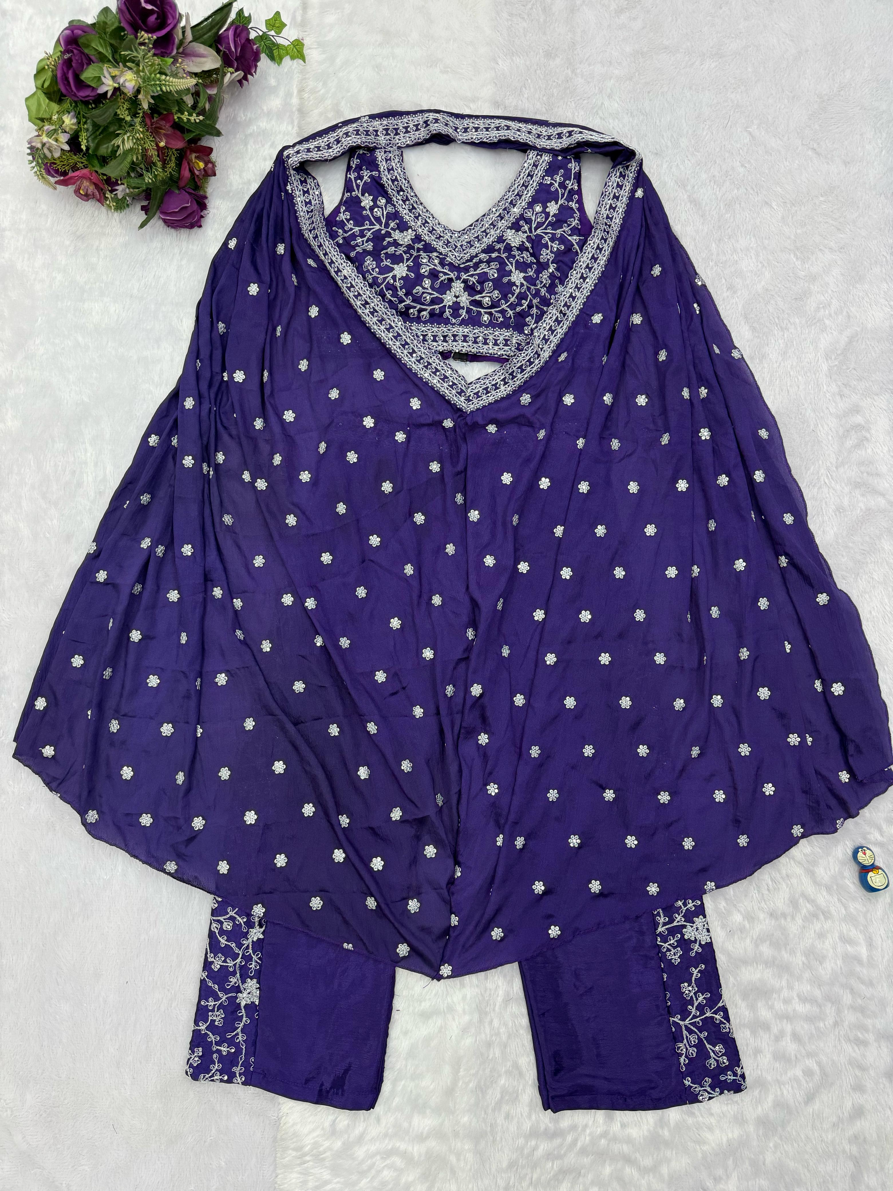 Work:- Full Embroidery Work, Fancy Pattern & Pleats With Lace