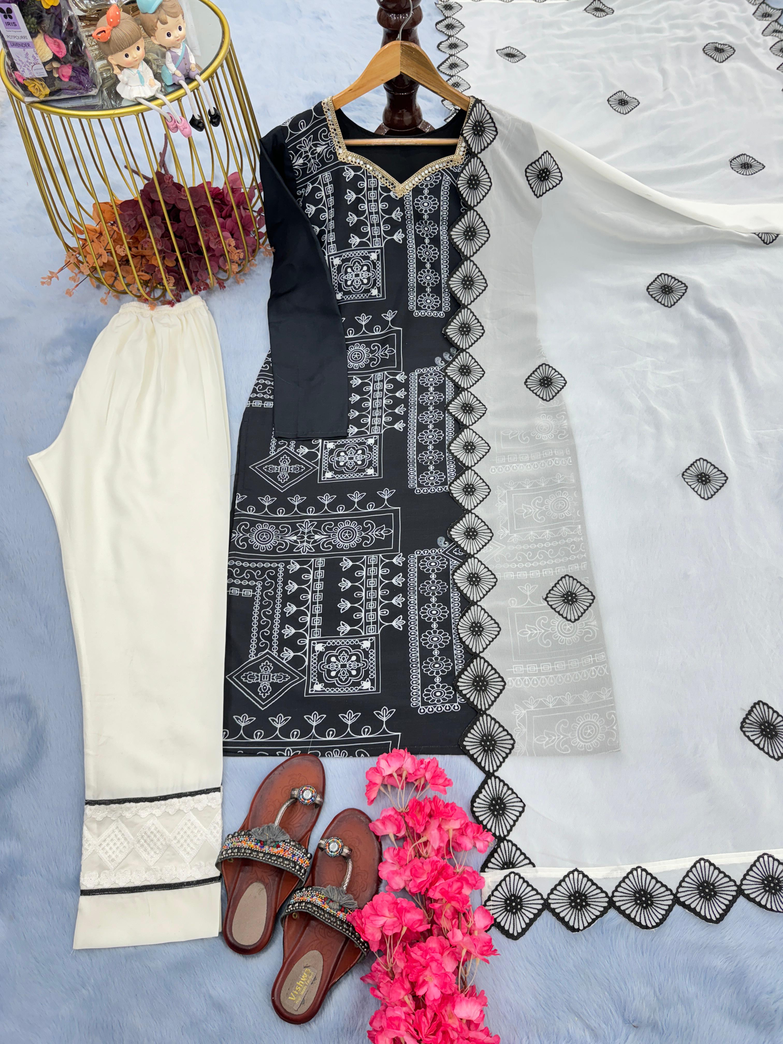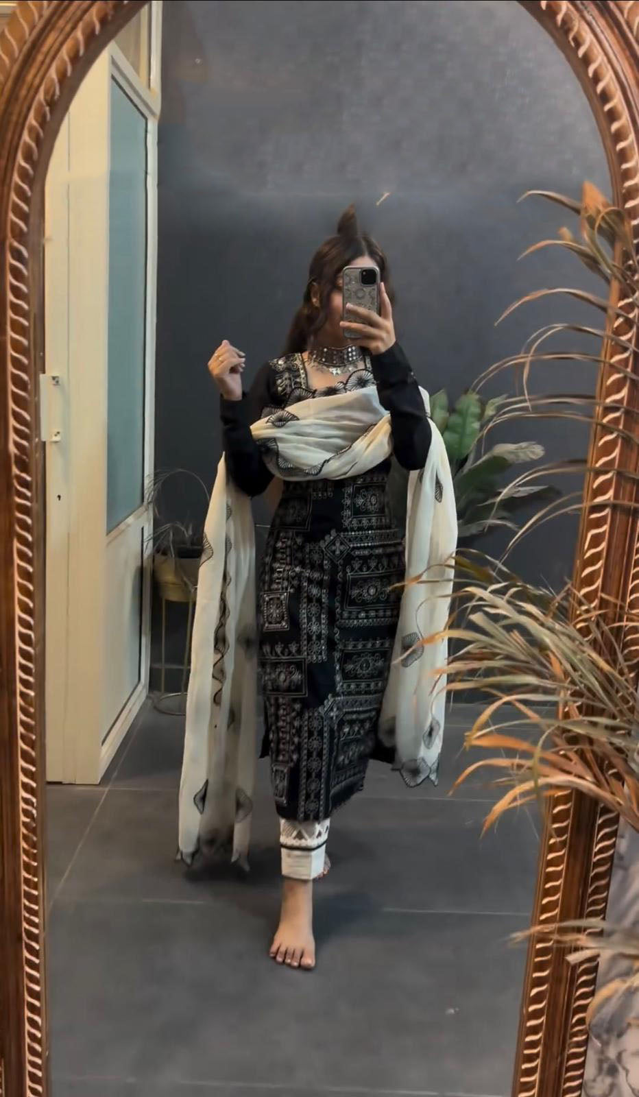 | WORK | Digital Print With Riyal Mirror Hand Work With Sleeves |