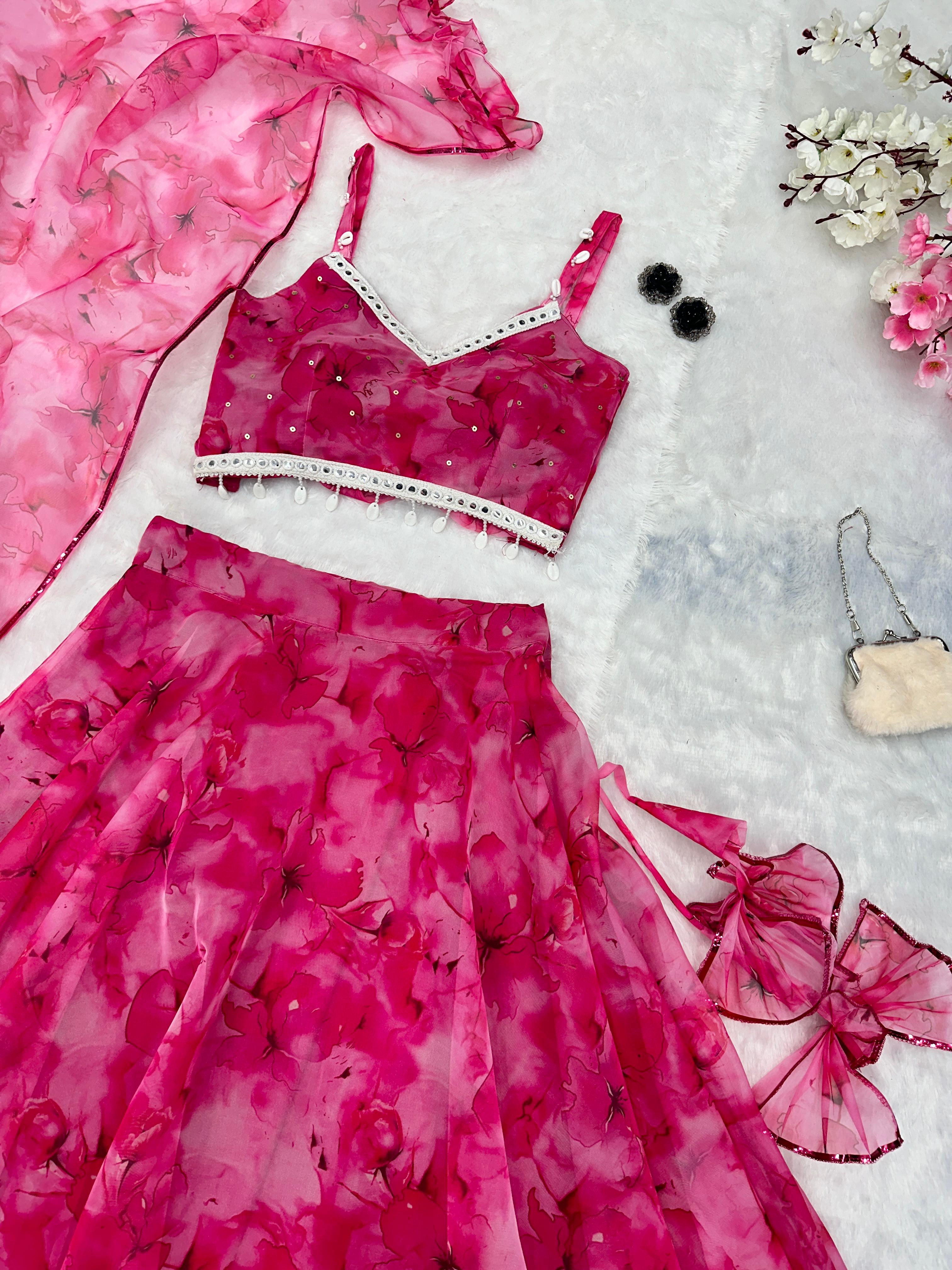 Peaceful Pink Color Organza Digital Printed Lehenga Choli