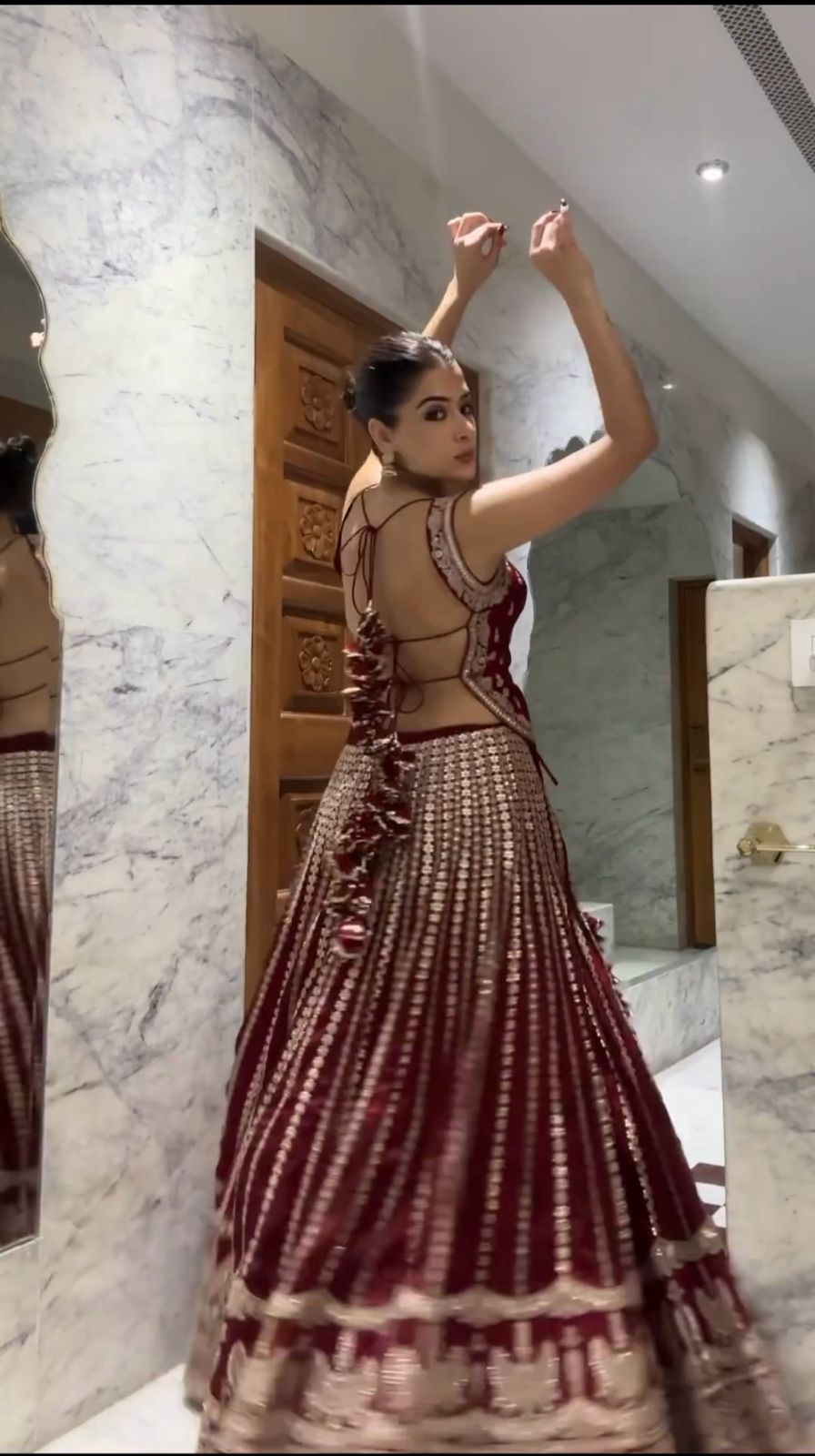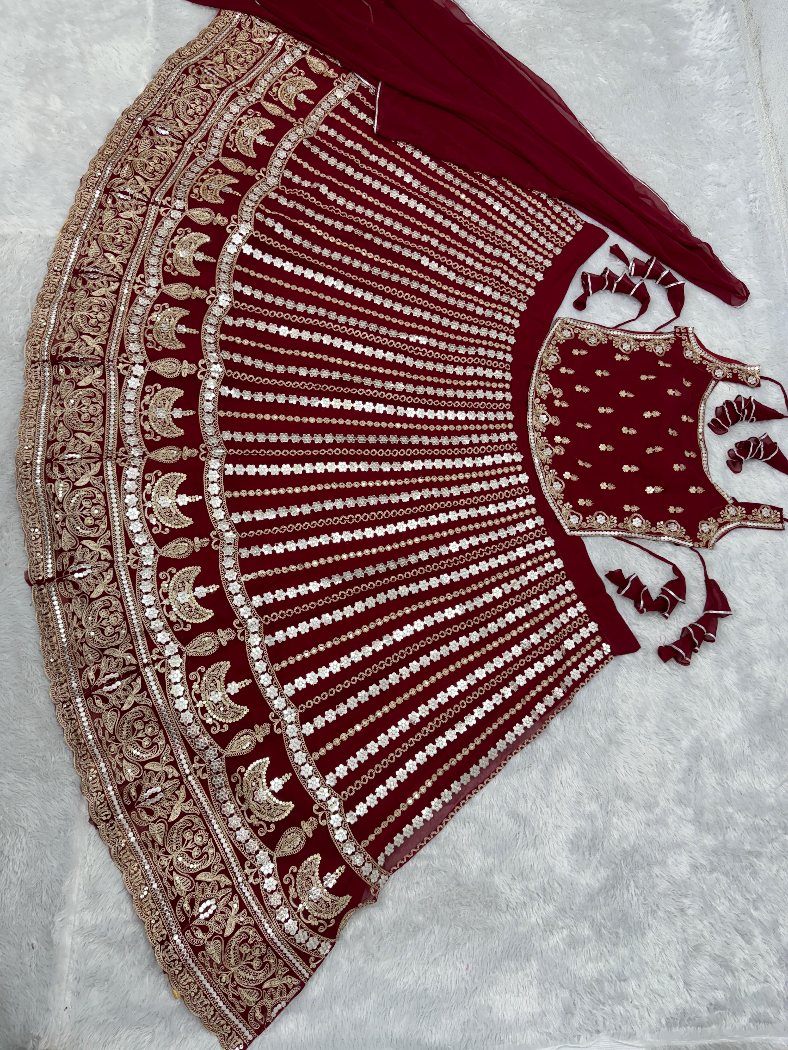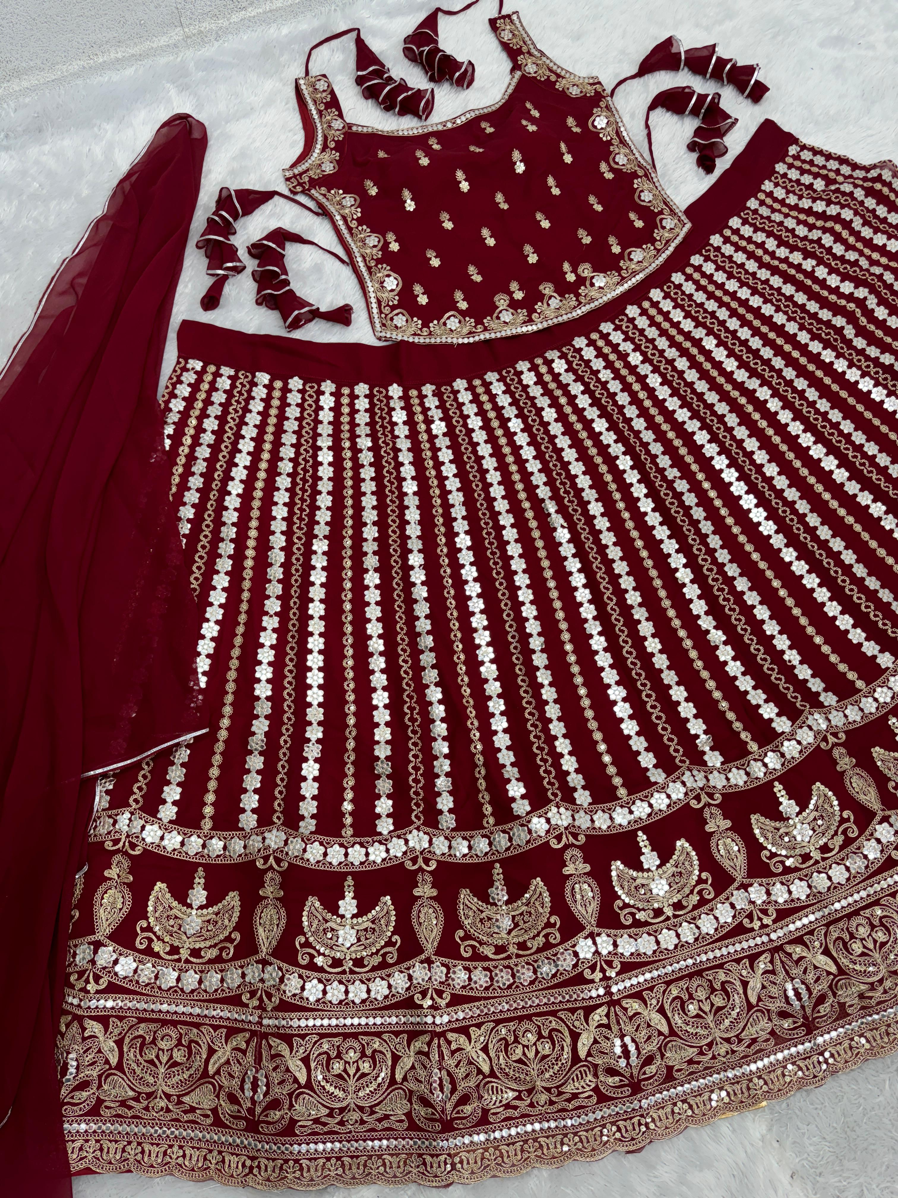 Presenting Embroidery Work Maroon Color Lehenga Choli