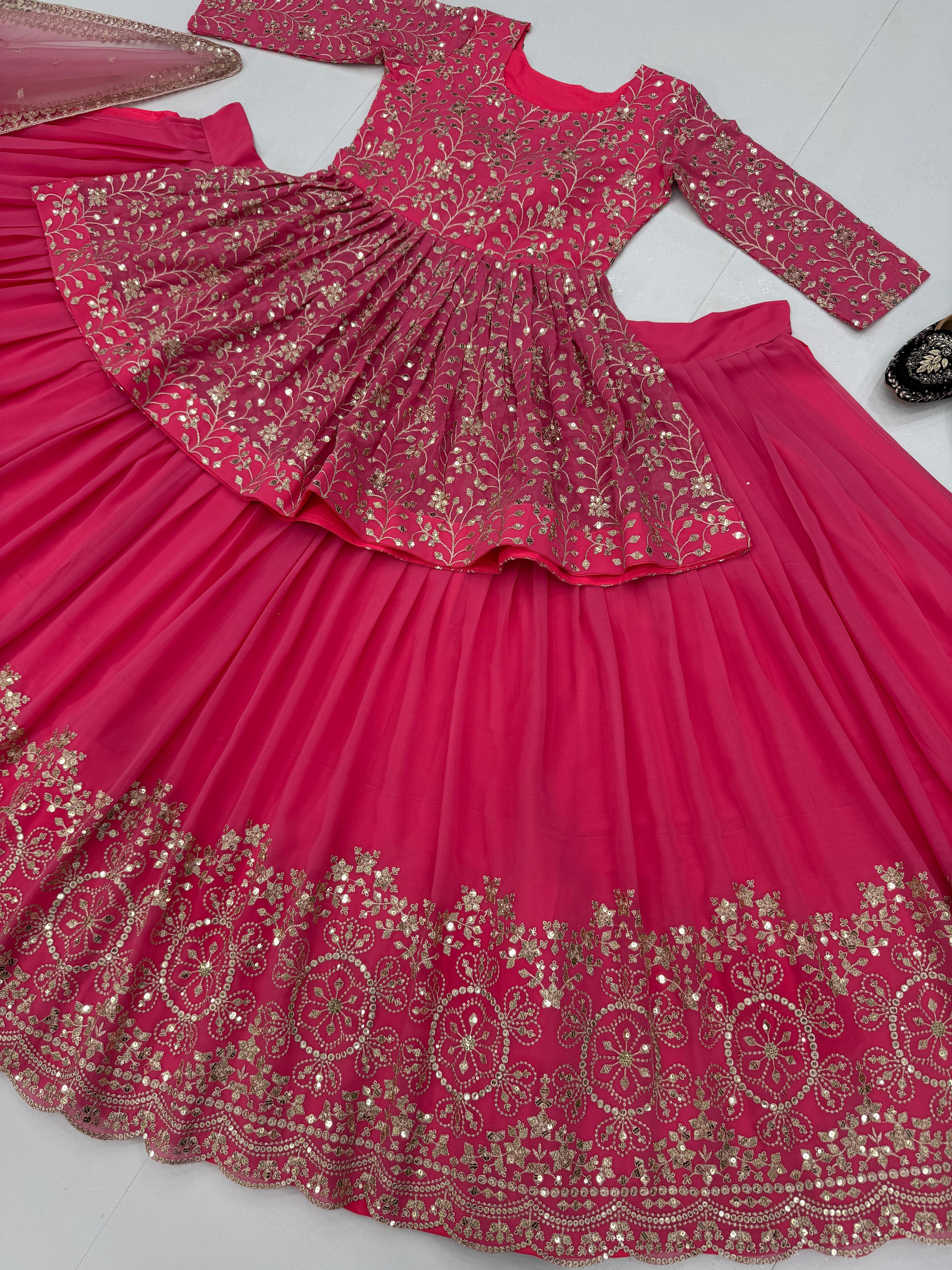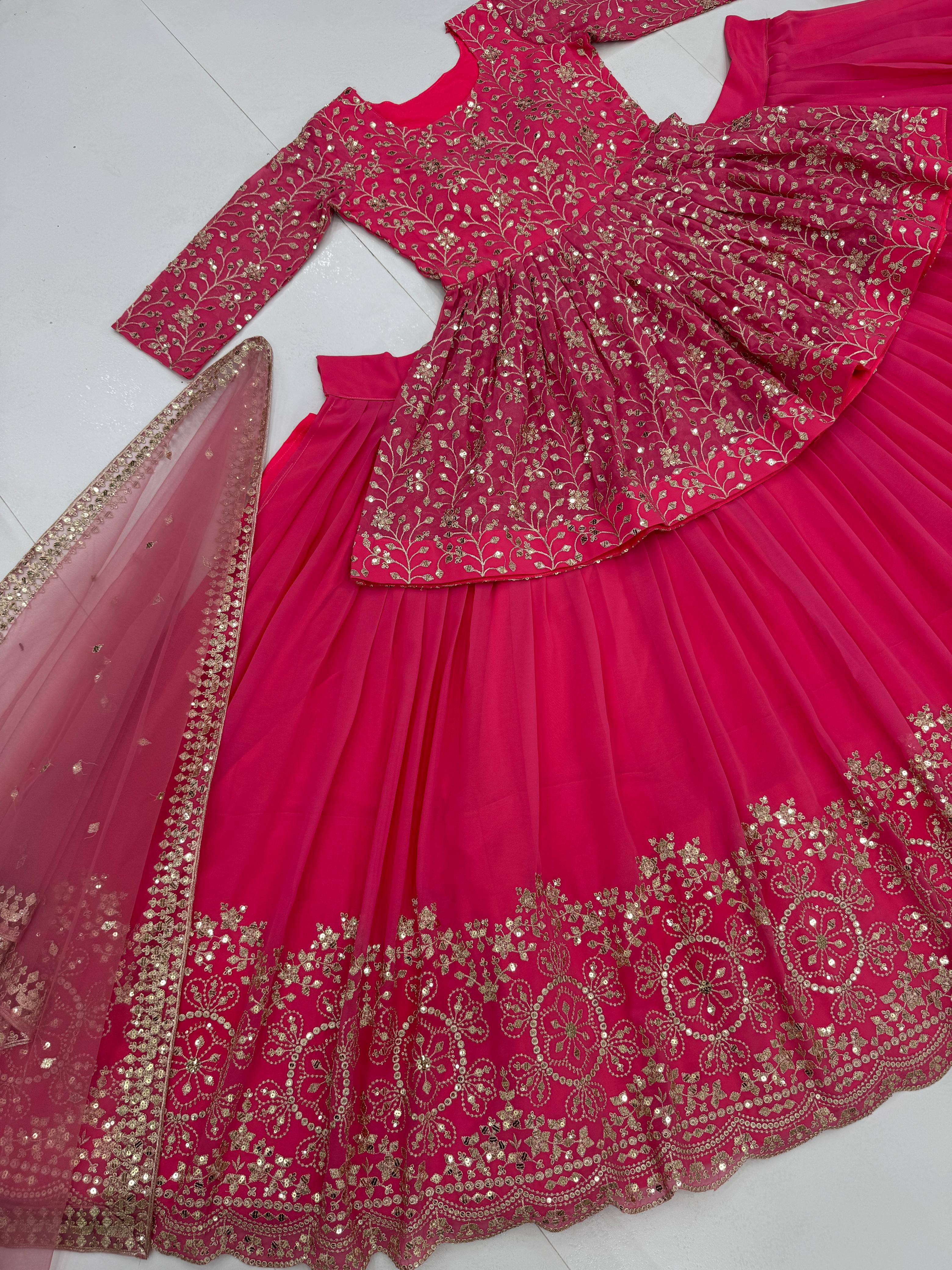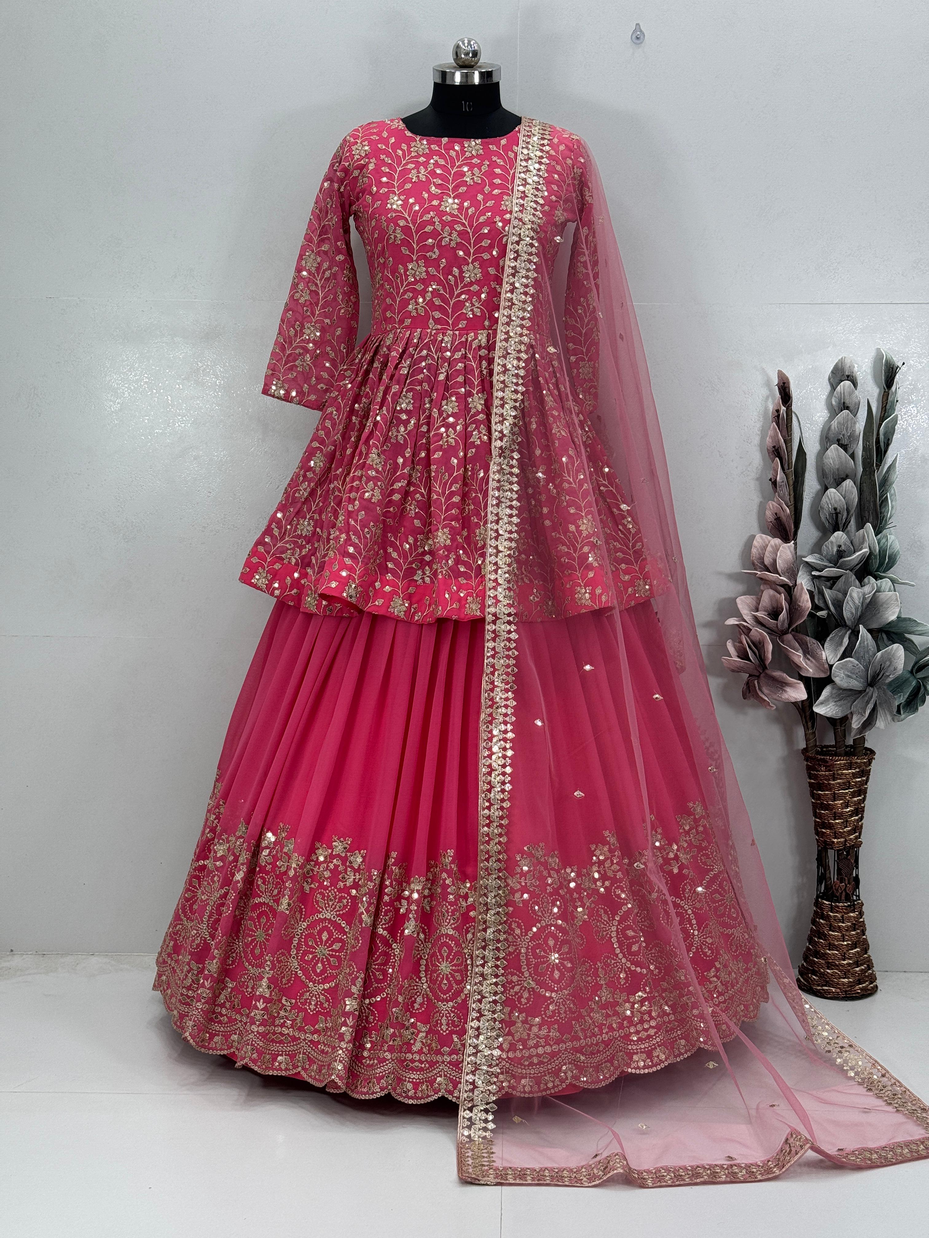 #lehengas Work : Heavy Embroidery Sequence Work Can-can, Can-vas, 3 Mtr Flair