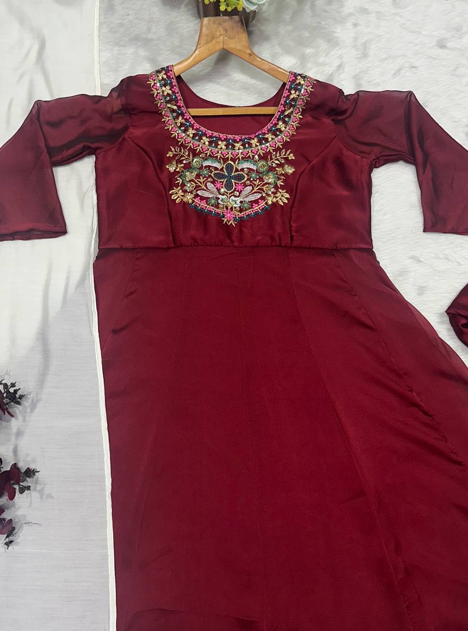 Ravishing Maroon Color Thread Embroidered Anarkali Suit