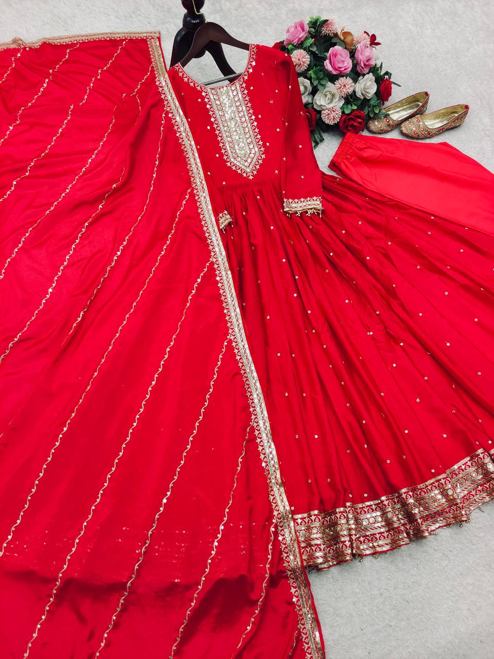 Ravishing Red Color Embroidery With Sequence Work Gown