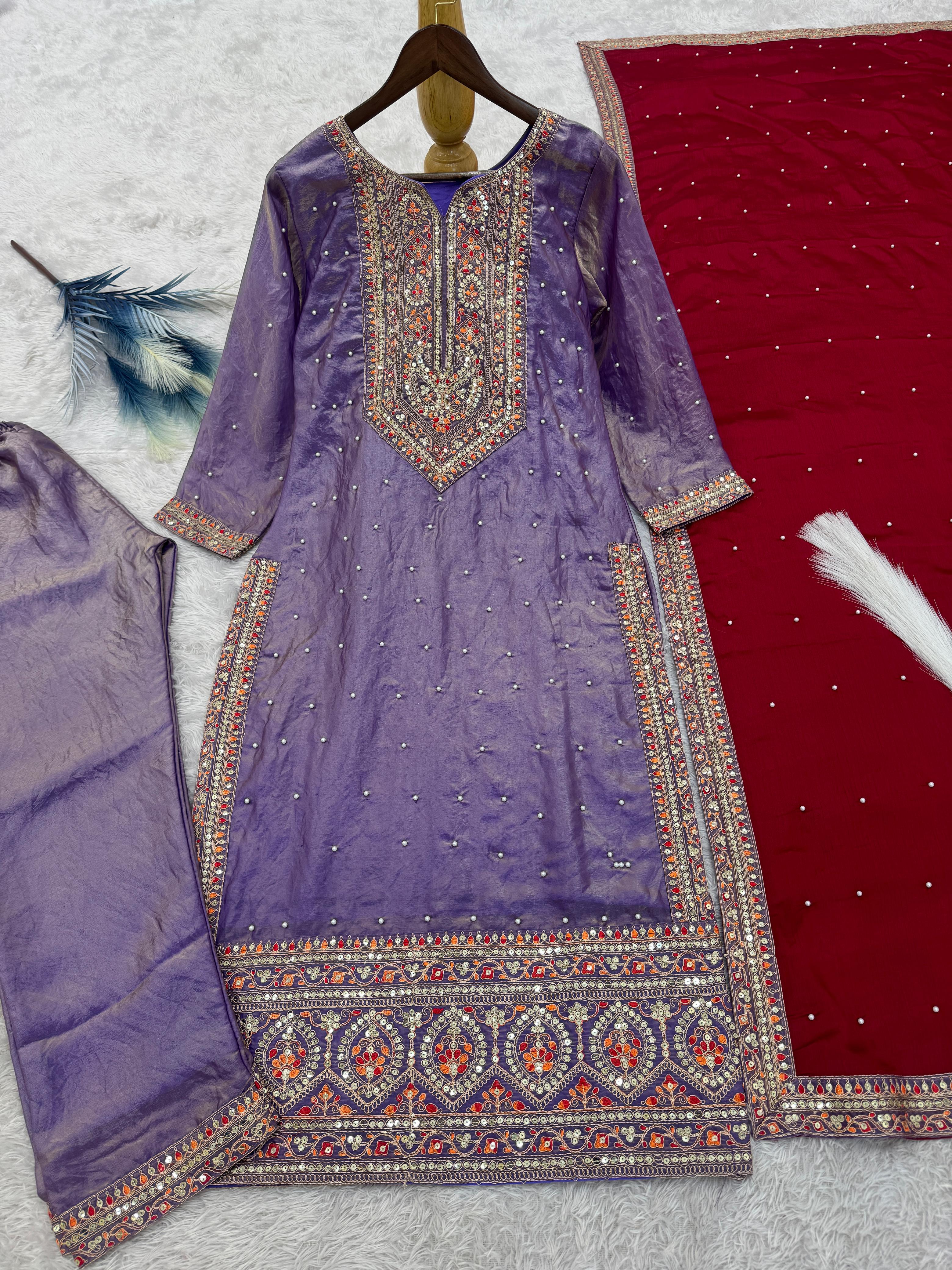 Dupatta Fabric : Heavy Chinon Silk With Embroidery Coding Dori-Sequence Work With Lace Border And Riveted Moti Work