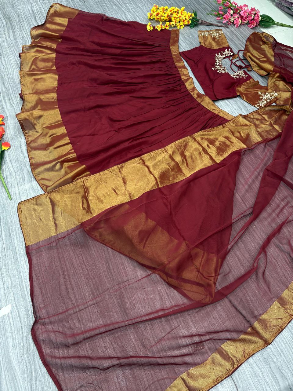 Shining Red Color Chiffon Jari Patta Lehenga Choli