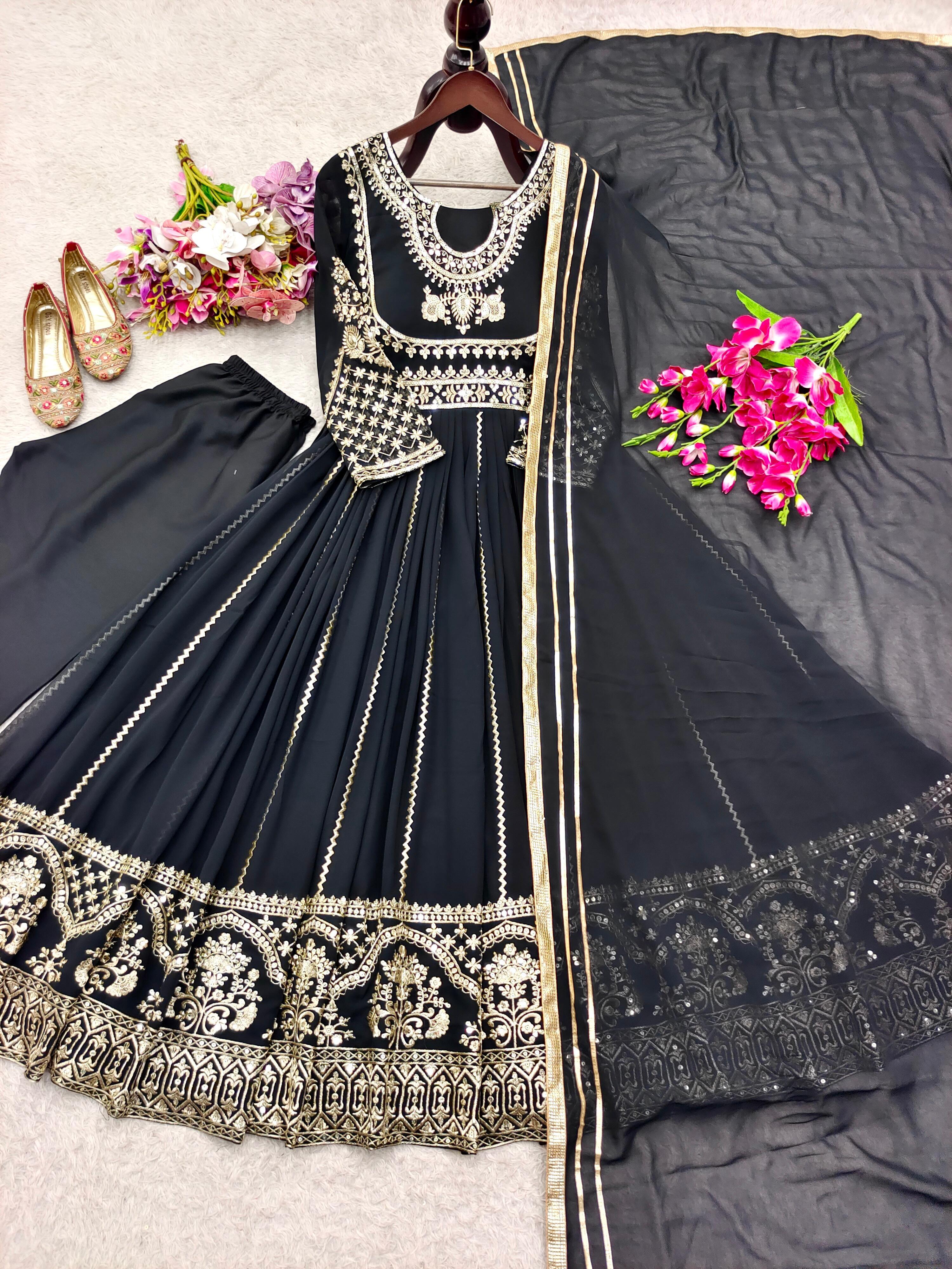 🩱Gown Fabric🩱: Pure Fox Georgette With Embroidery 5mm Sequins Work With Full-Sleeves With (Attached Ped With Cover-Patta)