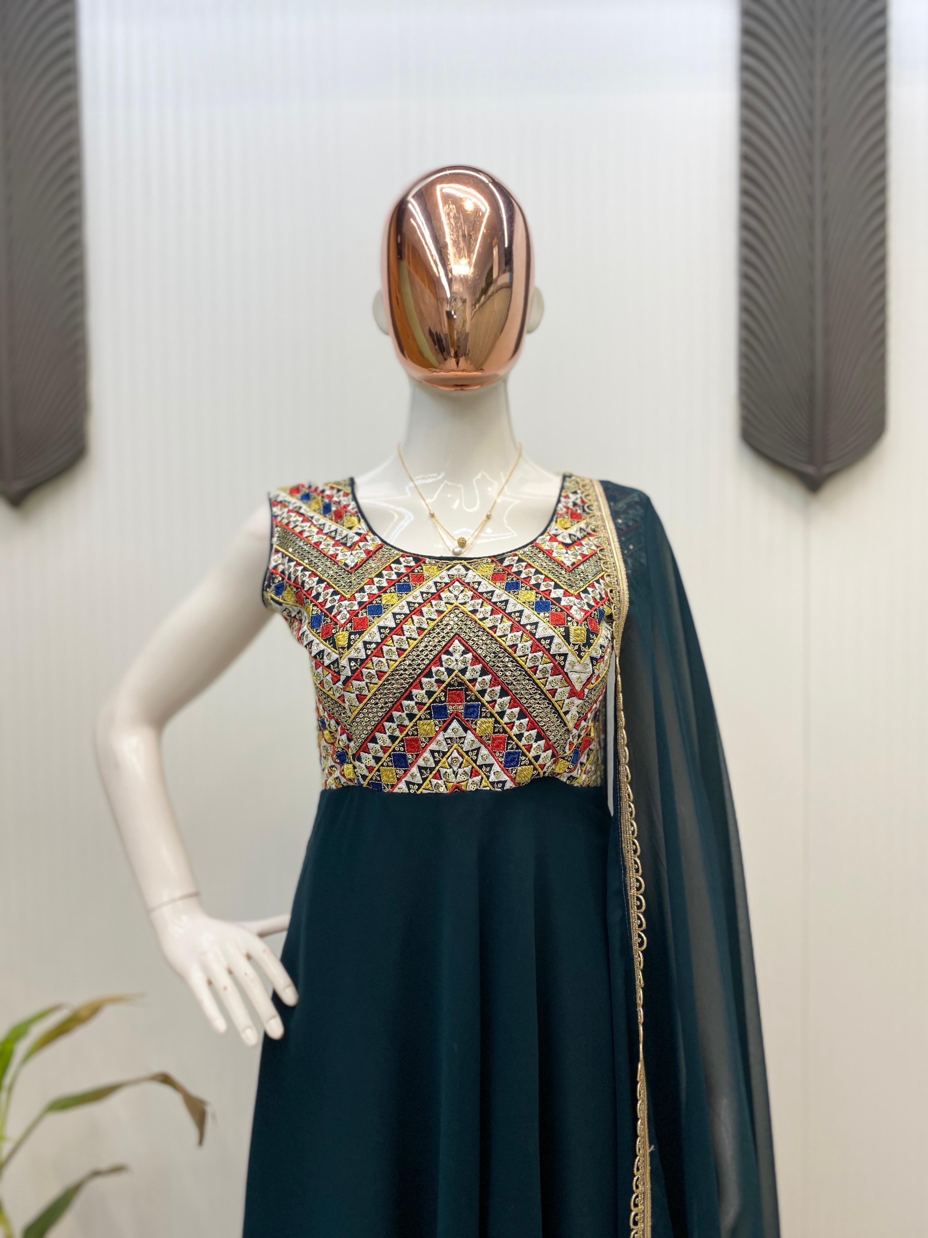 #work : Embroidery Sequence Work Front And Back Yock And Same Embroidered Lace On Full Flair