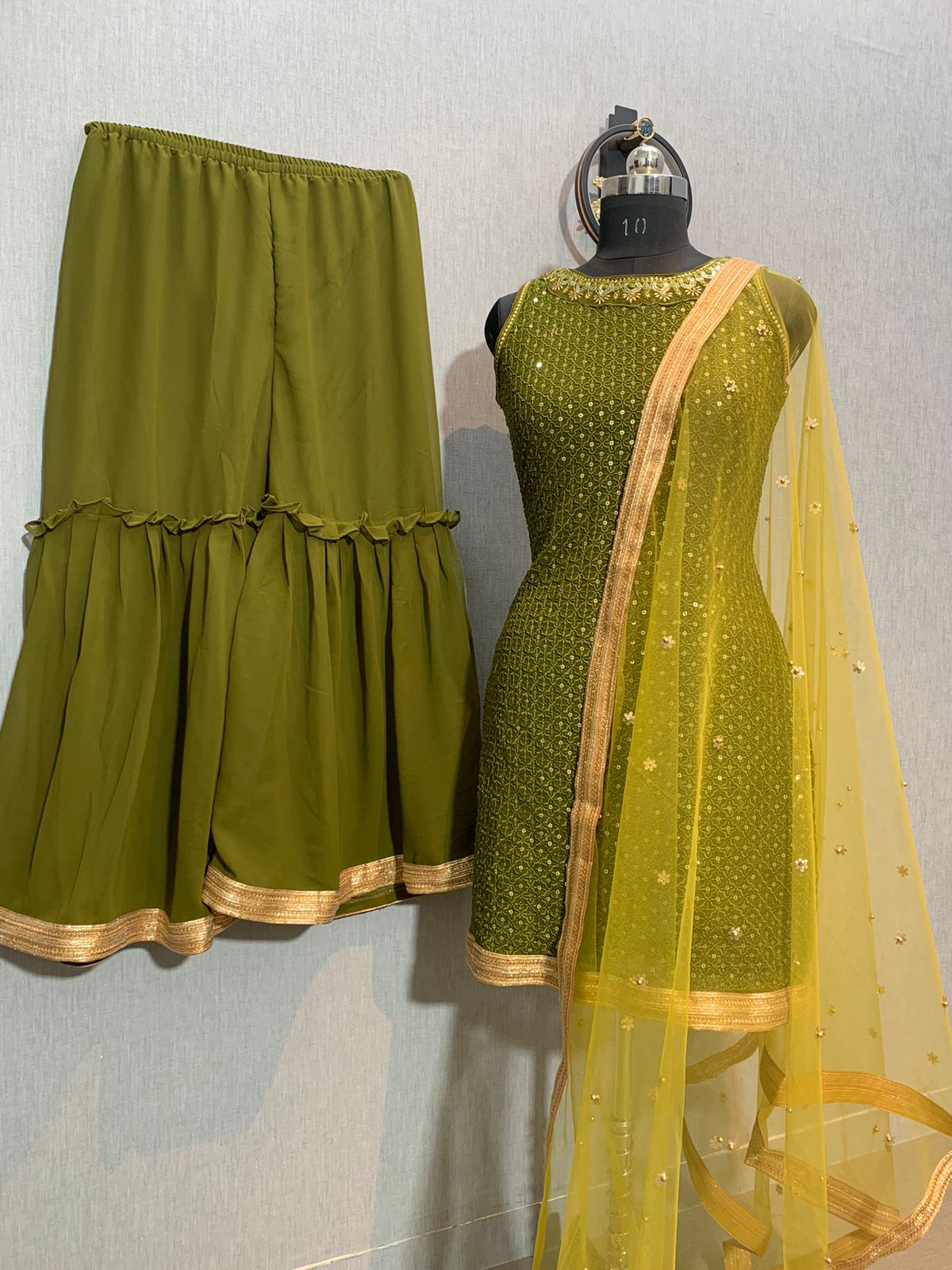 The suit is amazing. Very beautiful, same as photos with very heavy work. Loved it and so happy with my purchase!!