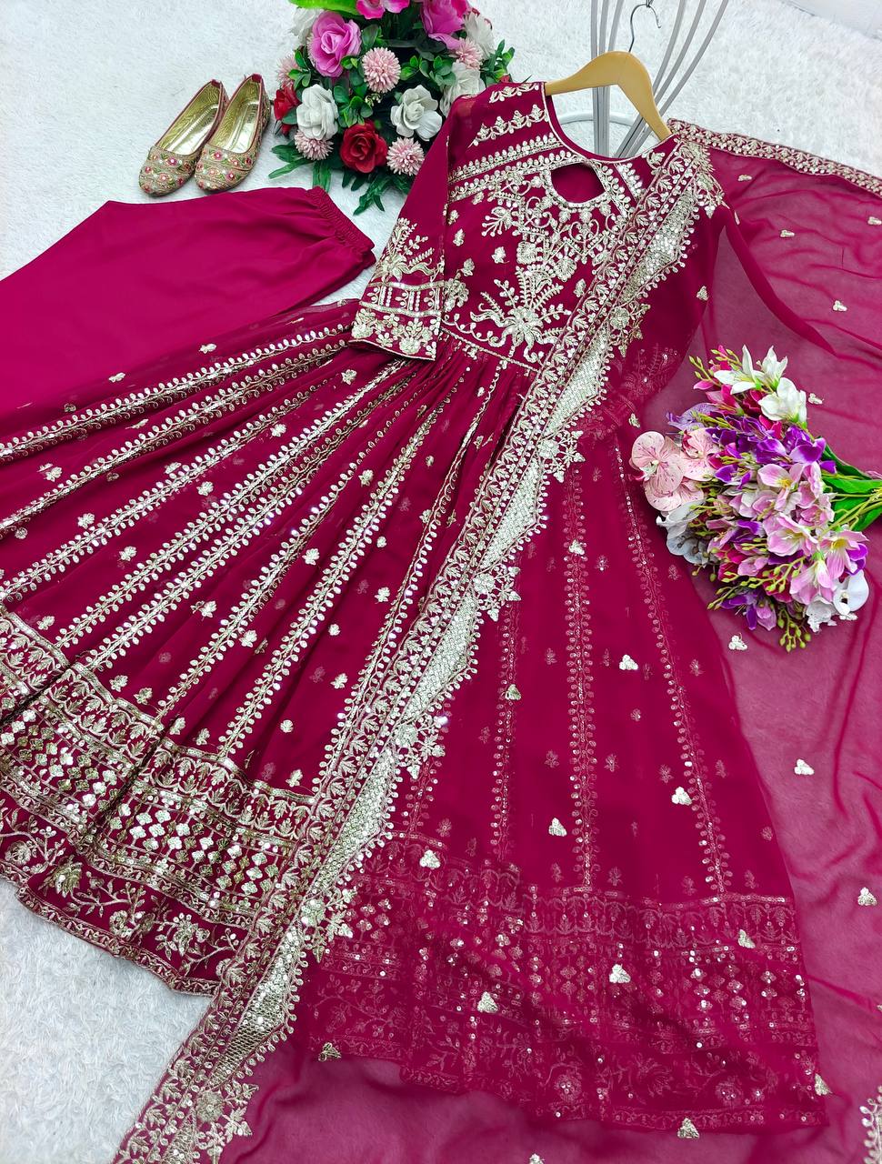 Dupatta Fabric: Heavy Fox Georgette With 5mm sequence Embroidery Work With Full-Stitch (2.15-2.20)