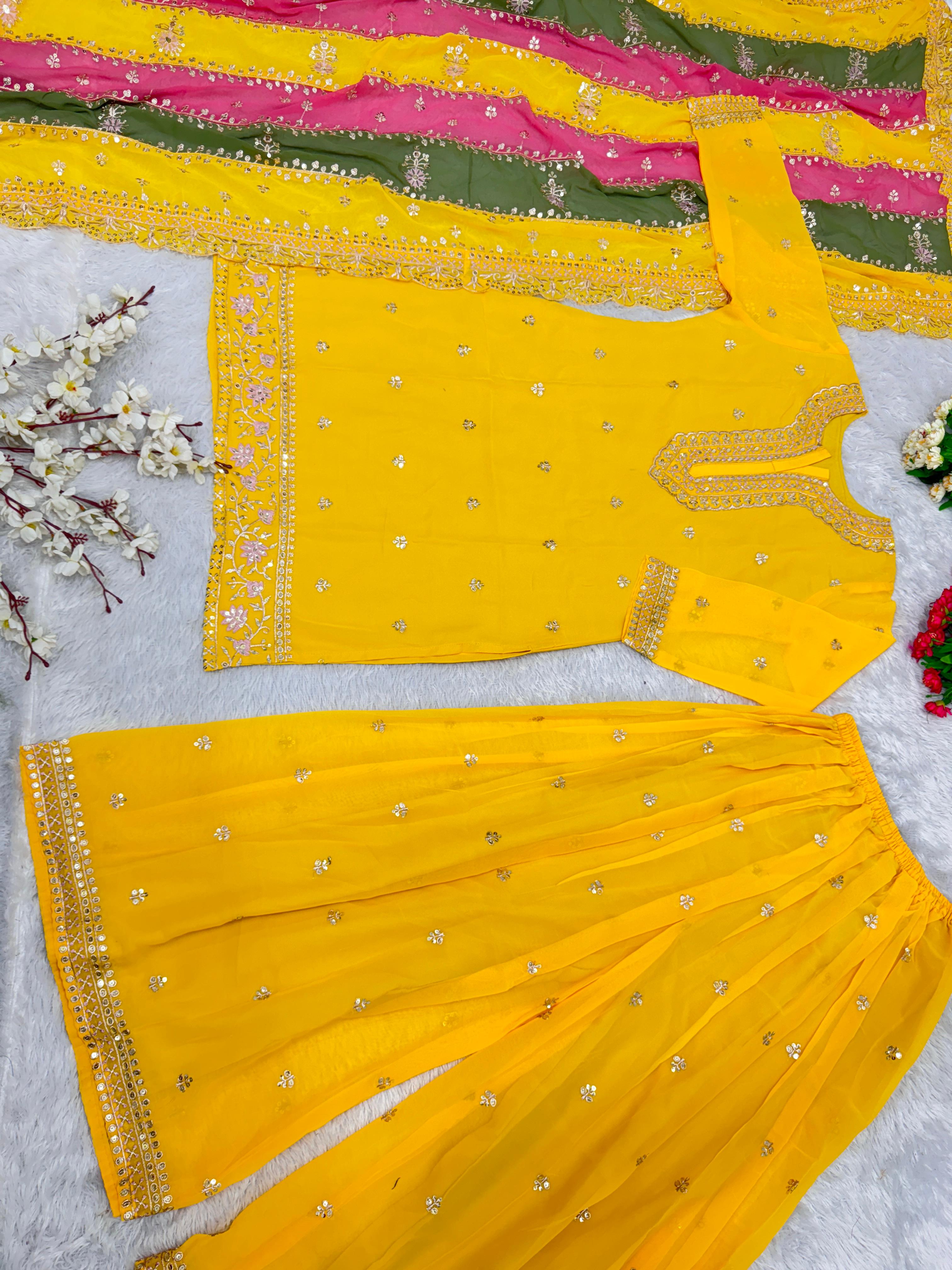 Stylish Embroidery Sequins Work Yellow Color Anarkali Suit