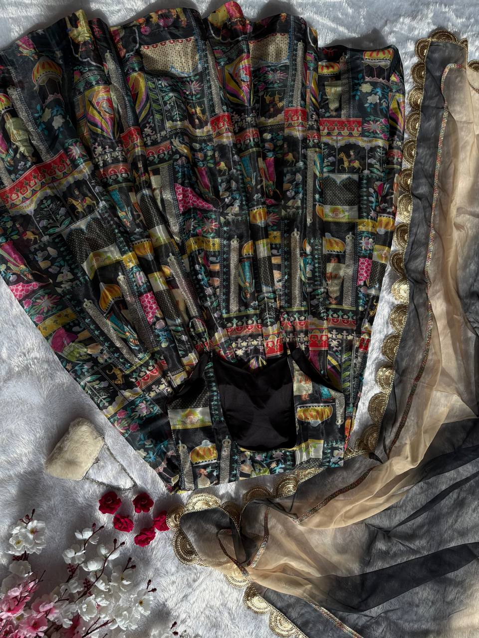 👗 Anarkali Gown - pure Jimmy organza silk digital printed padded gown with 54+gown length !! 8mtr Flair outfit ! 🔥