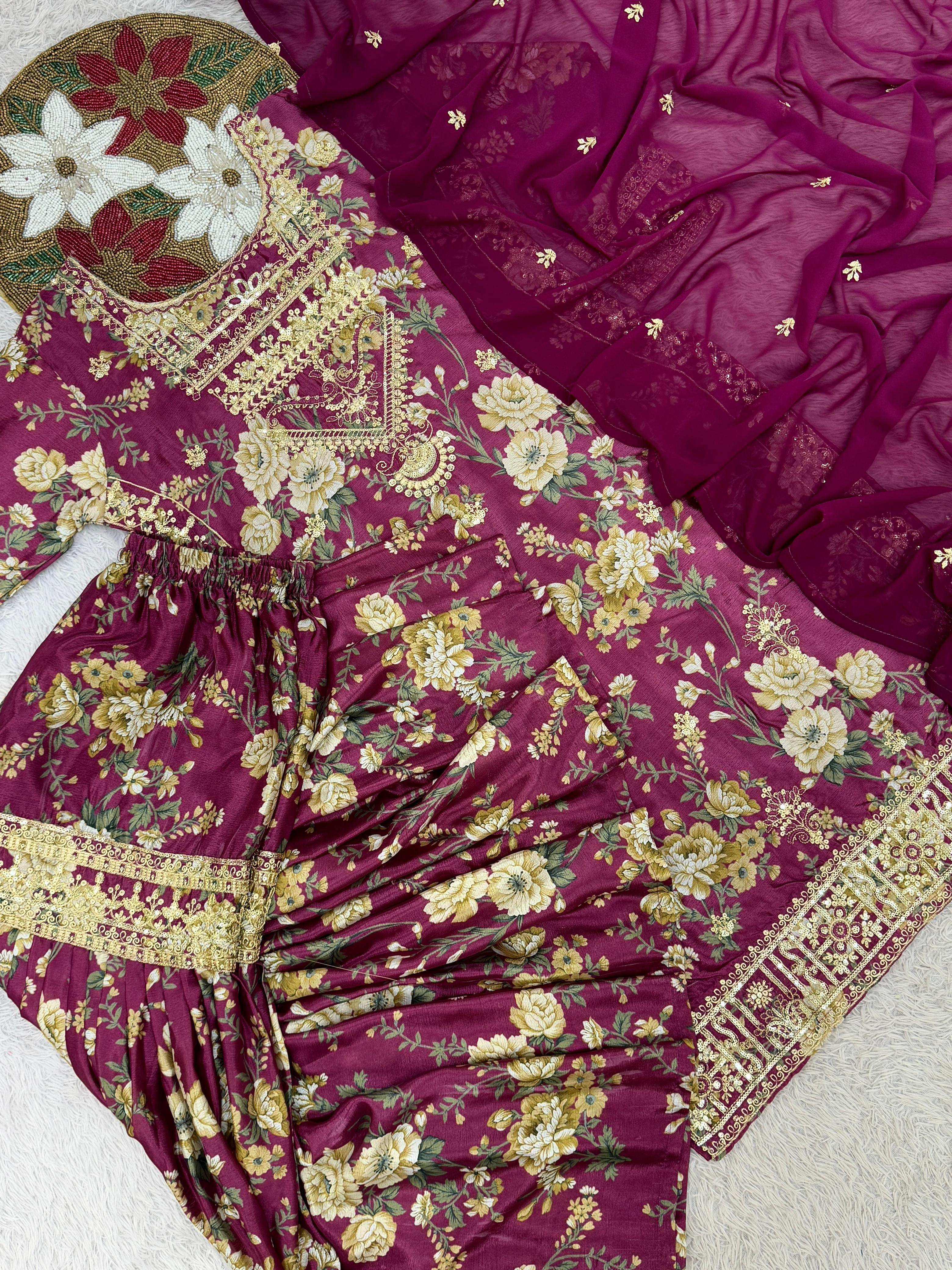 ➡️ Work :- Beautiful Embroidery Sequence Work With Digital Print.