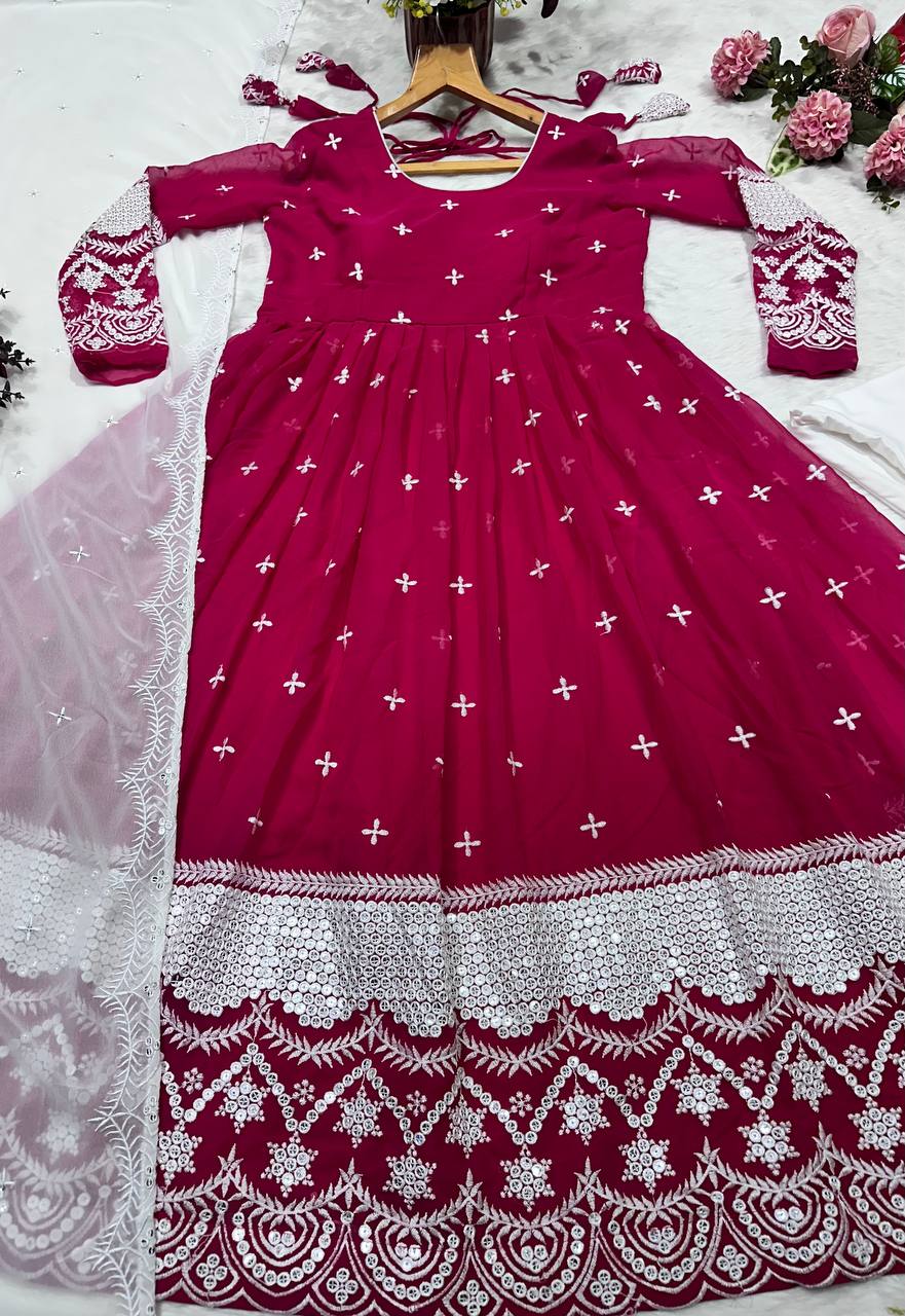 Stylish Pink Blooming Embroidery Gown