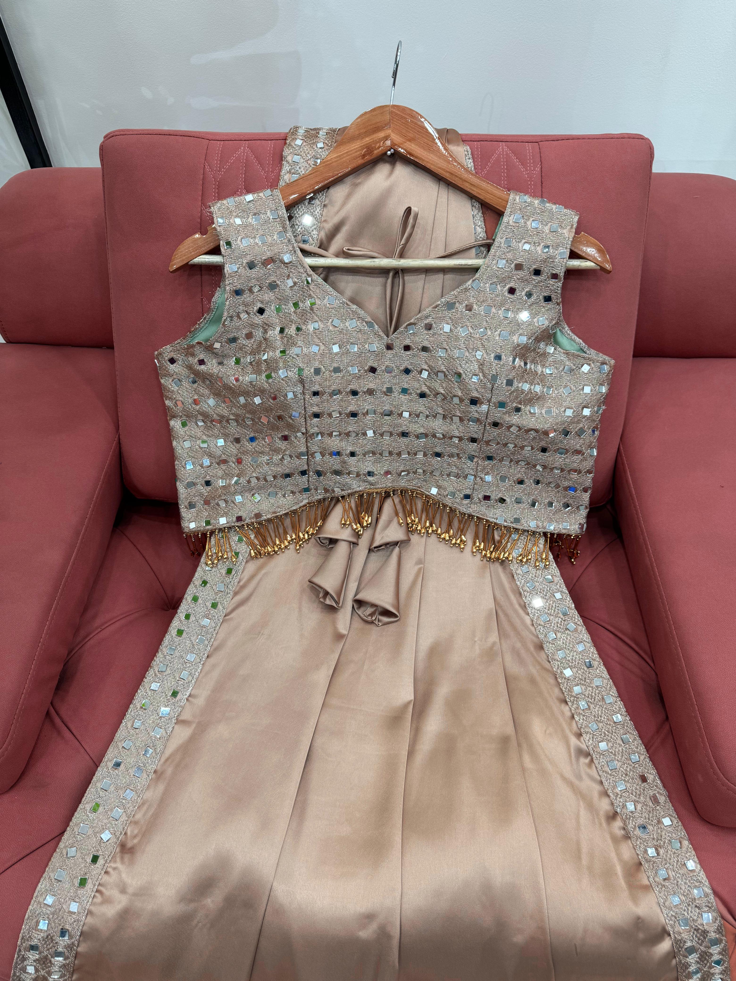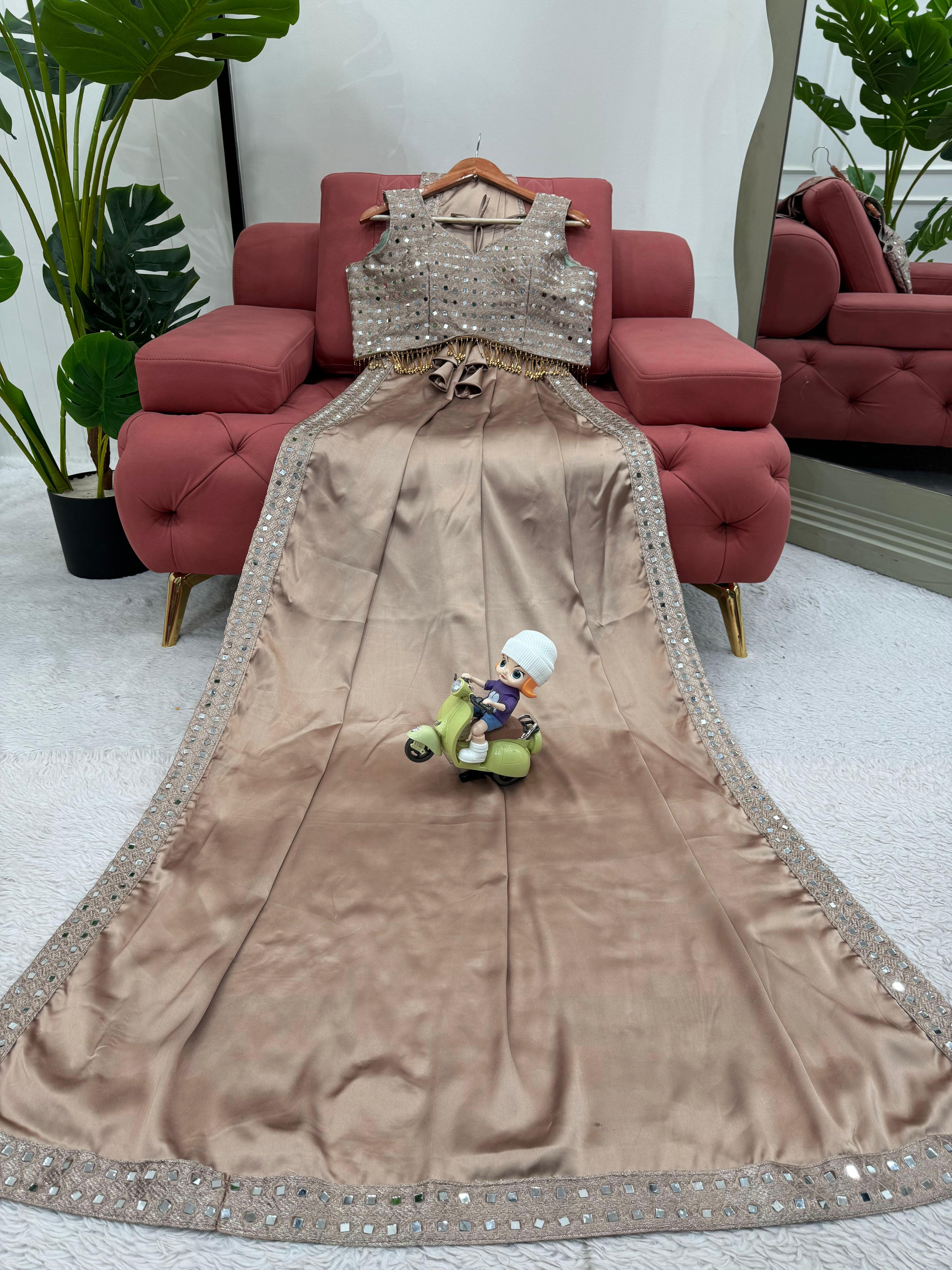 |  Work             | Japan Satin Silk With Inner Thread & Real Mirror Work With Fancy Lace Front And Back Both Side Work |