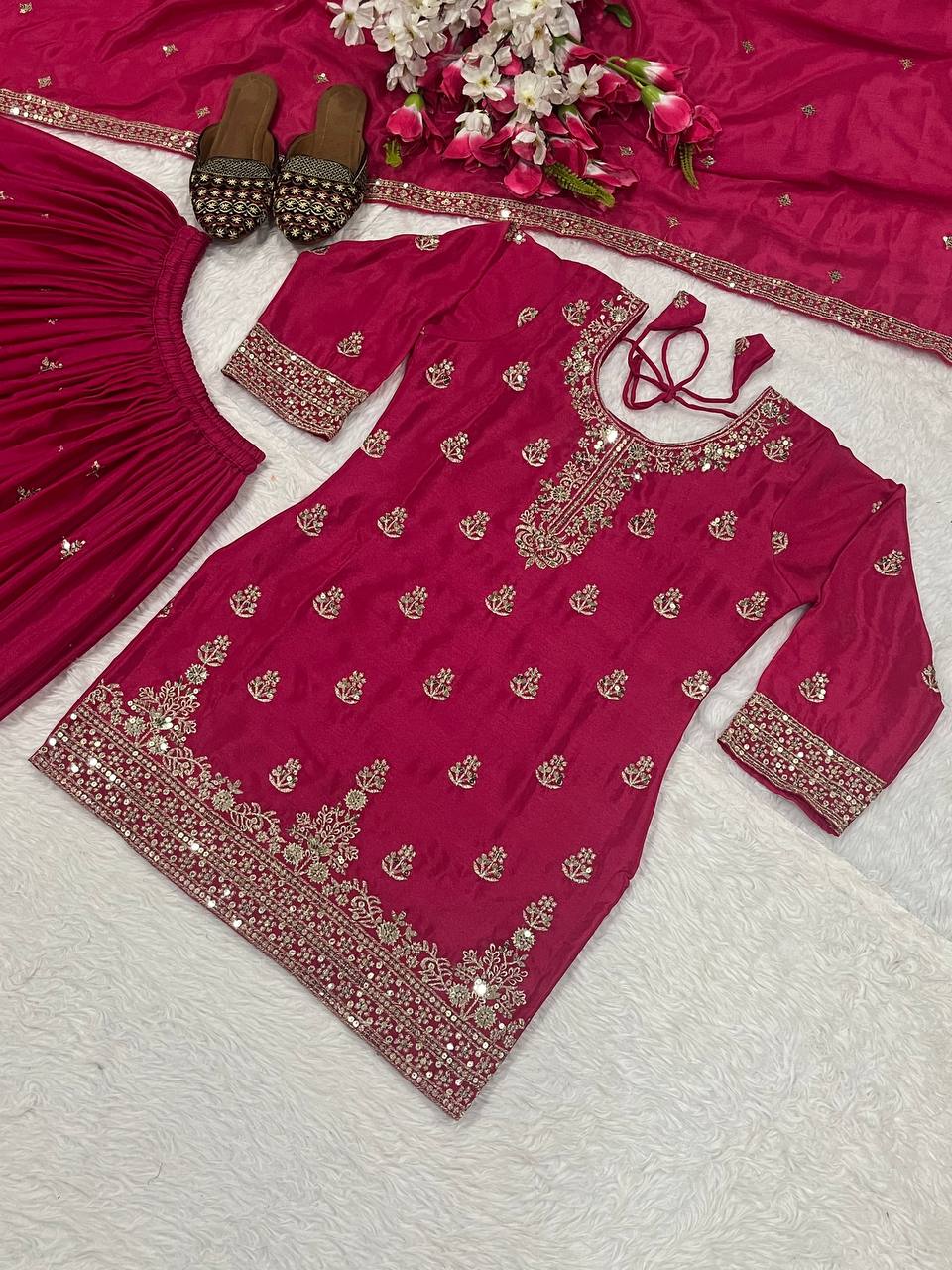 Stylish Sky Blue Chinnon Silk Sequence Work Sharara Suit