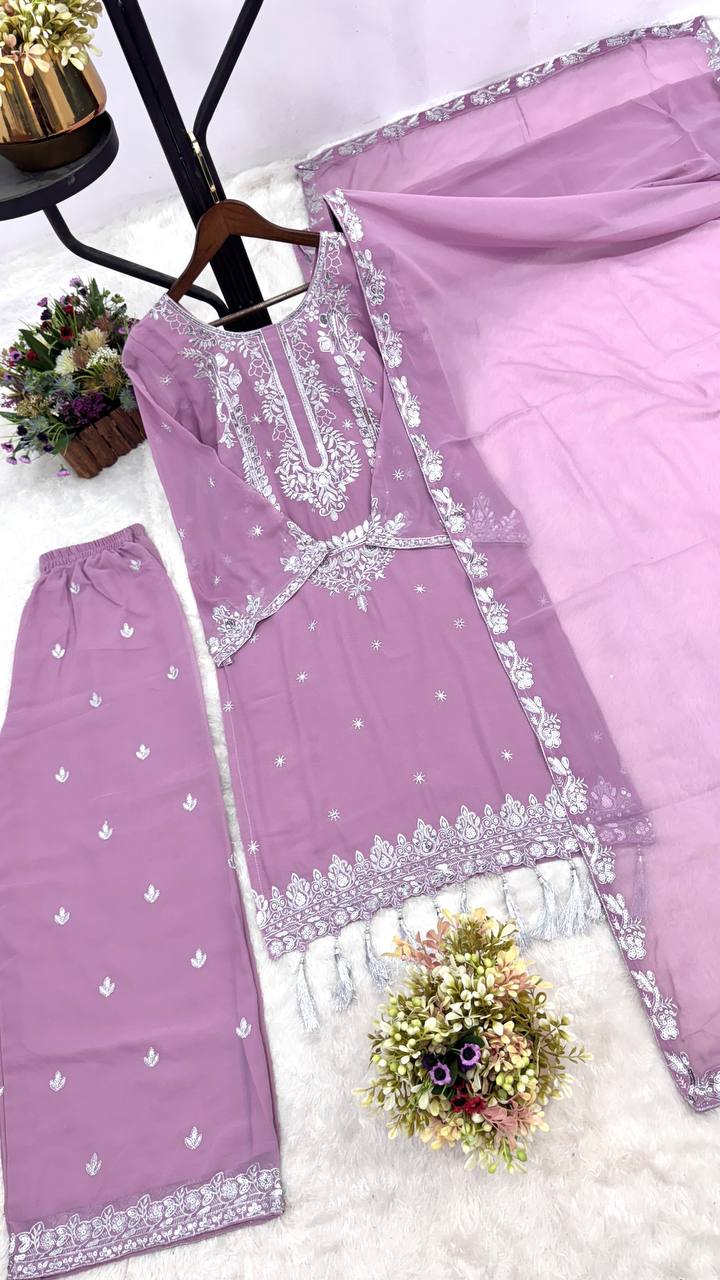 Thread With Sequence Work Lavender Color Palazzo Suit
