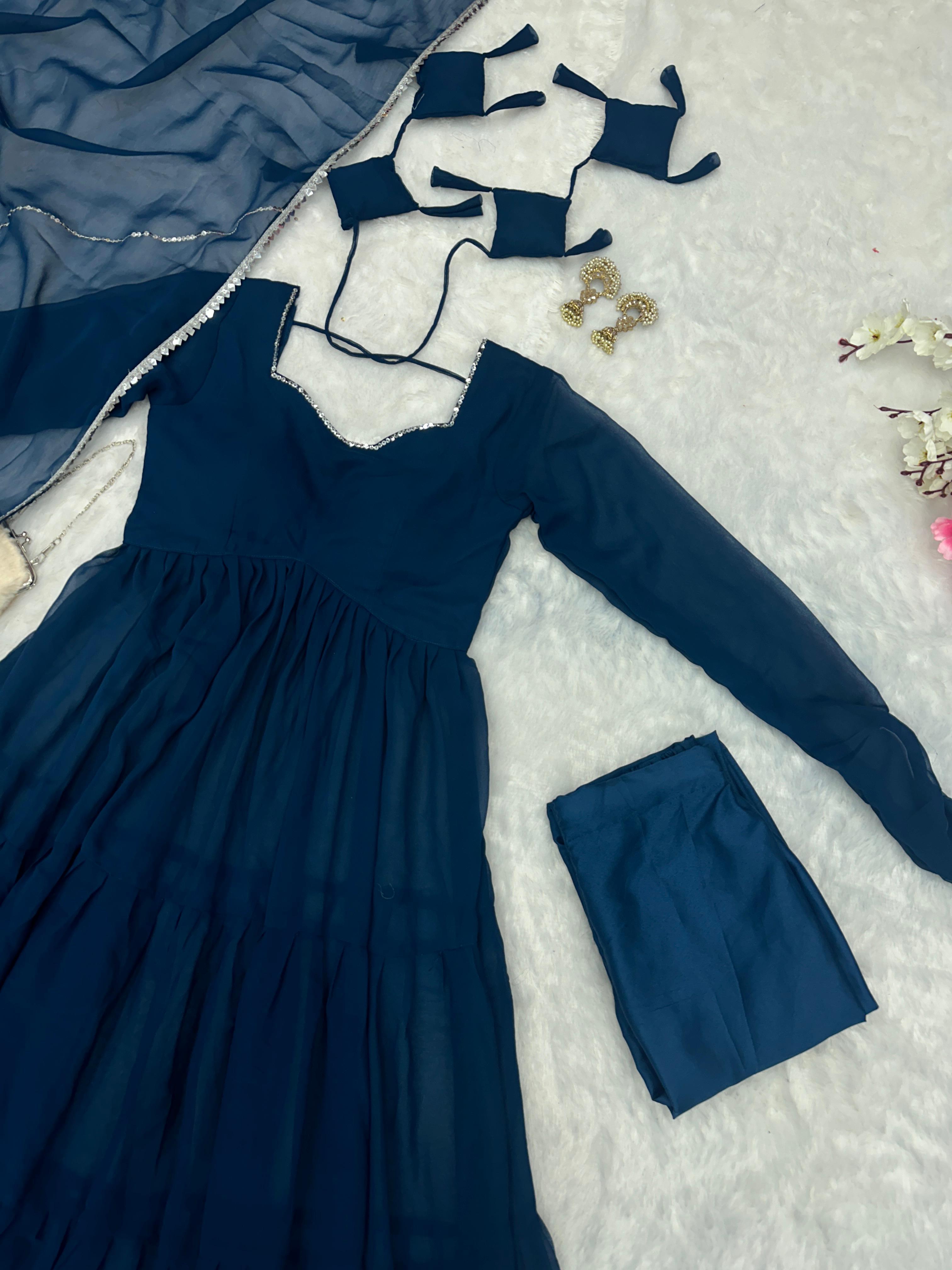 Trendy Blue Georgette Anarkali Gown