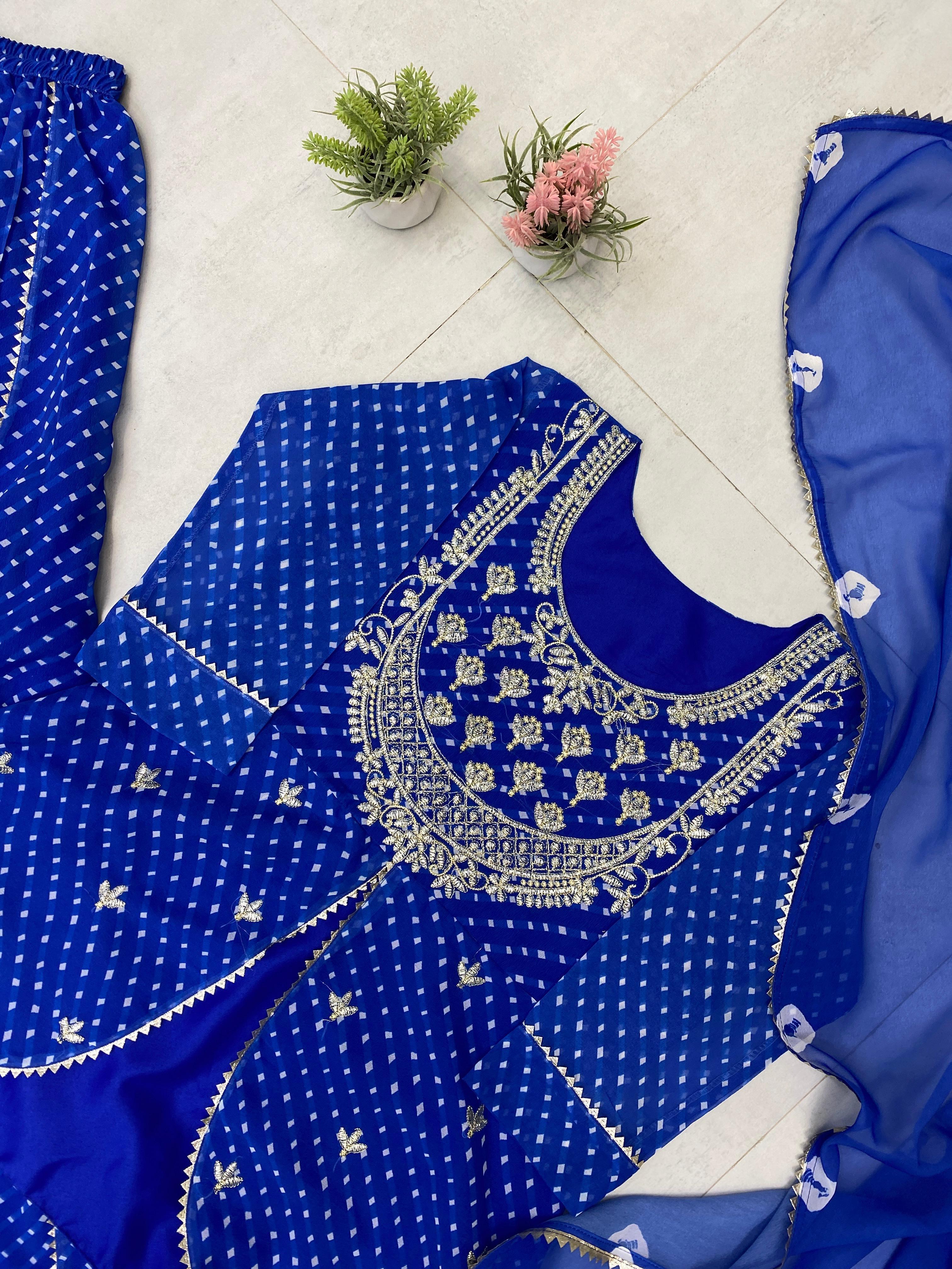 # Dupatta: georgette With Digital Print And Samosa Lace Work 2.2meter