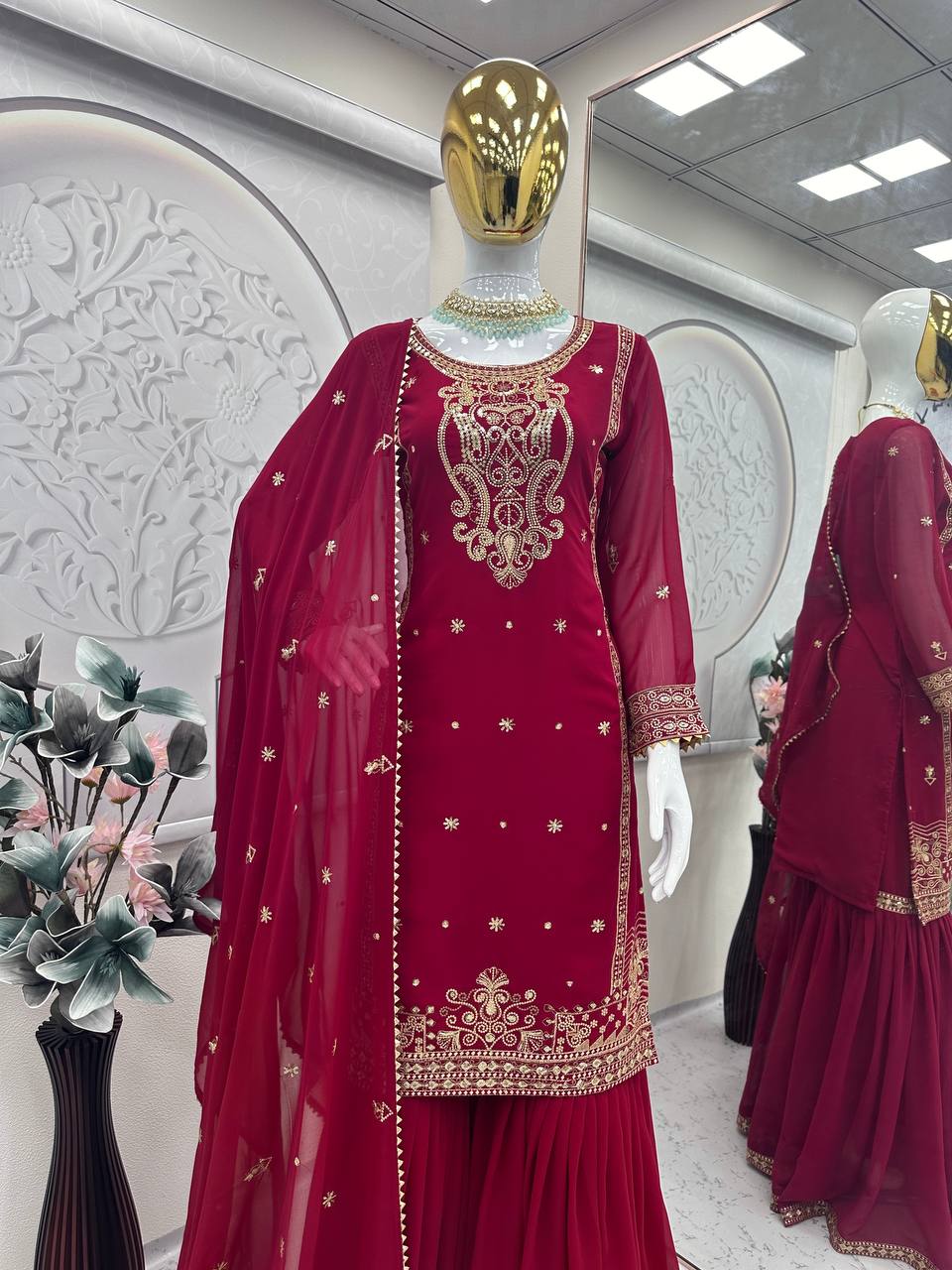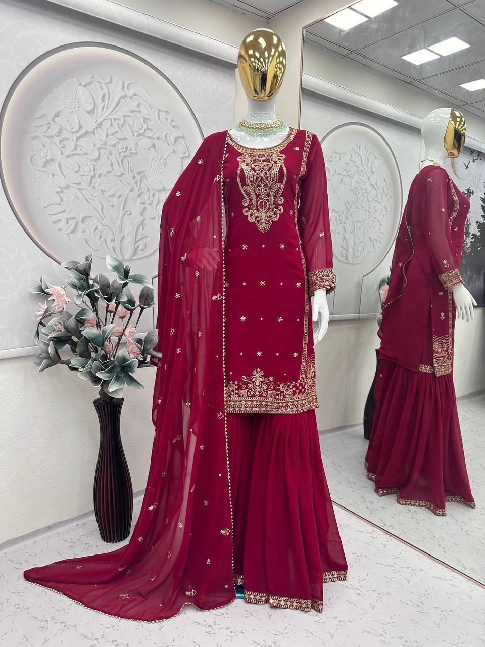 Wedding & Party Wear Sequins Work Red Color Sharara Suit