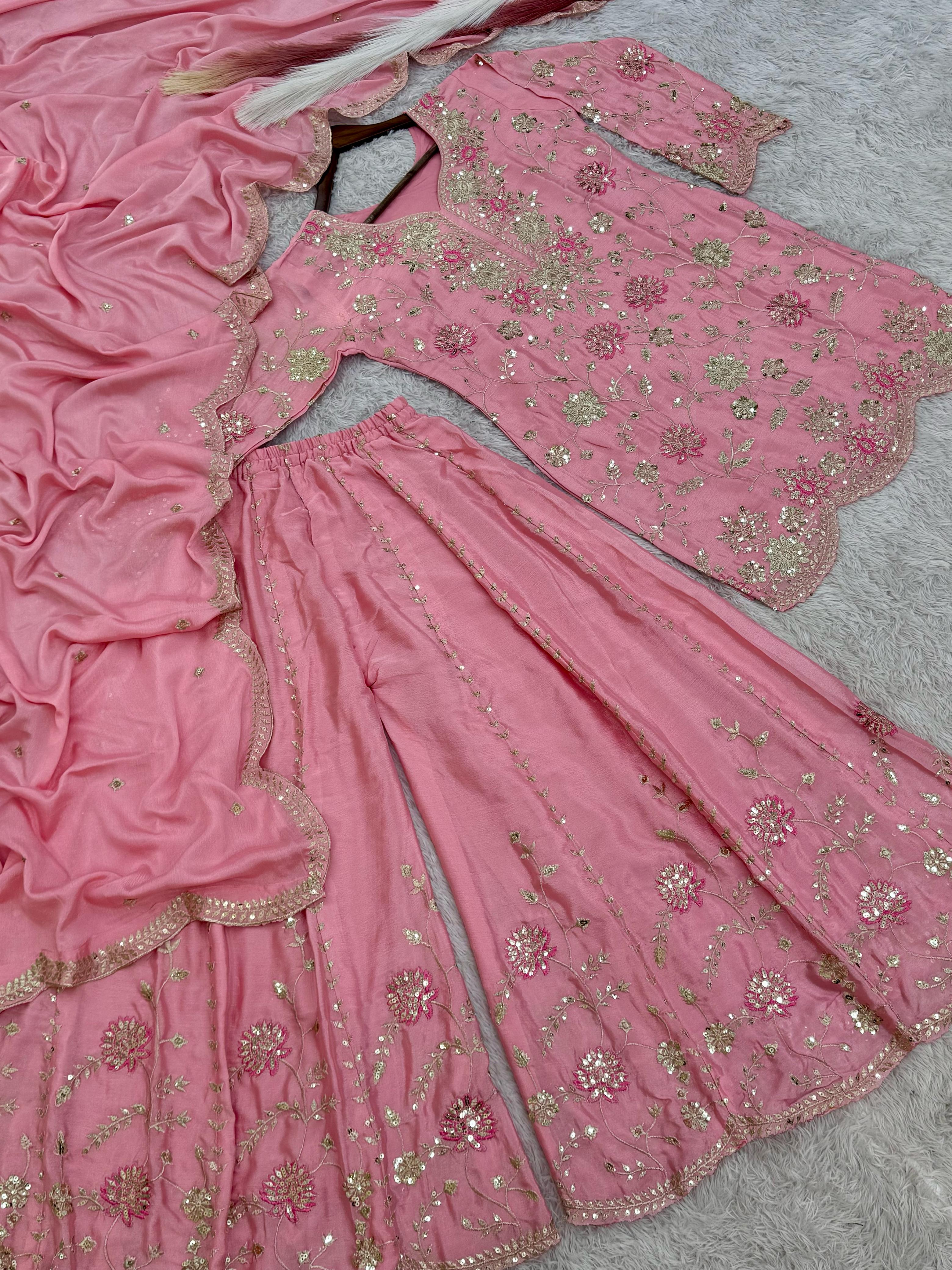 Wonderful Sequence Haldi Wear Pink Color Sharara Suit