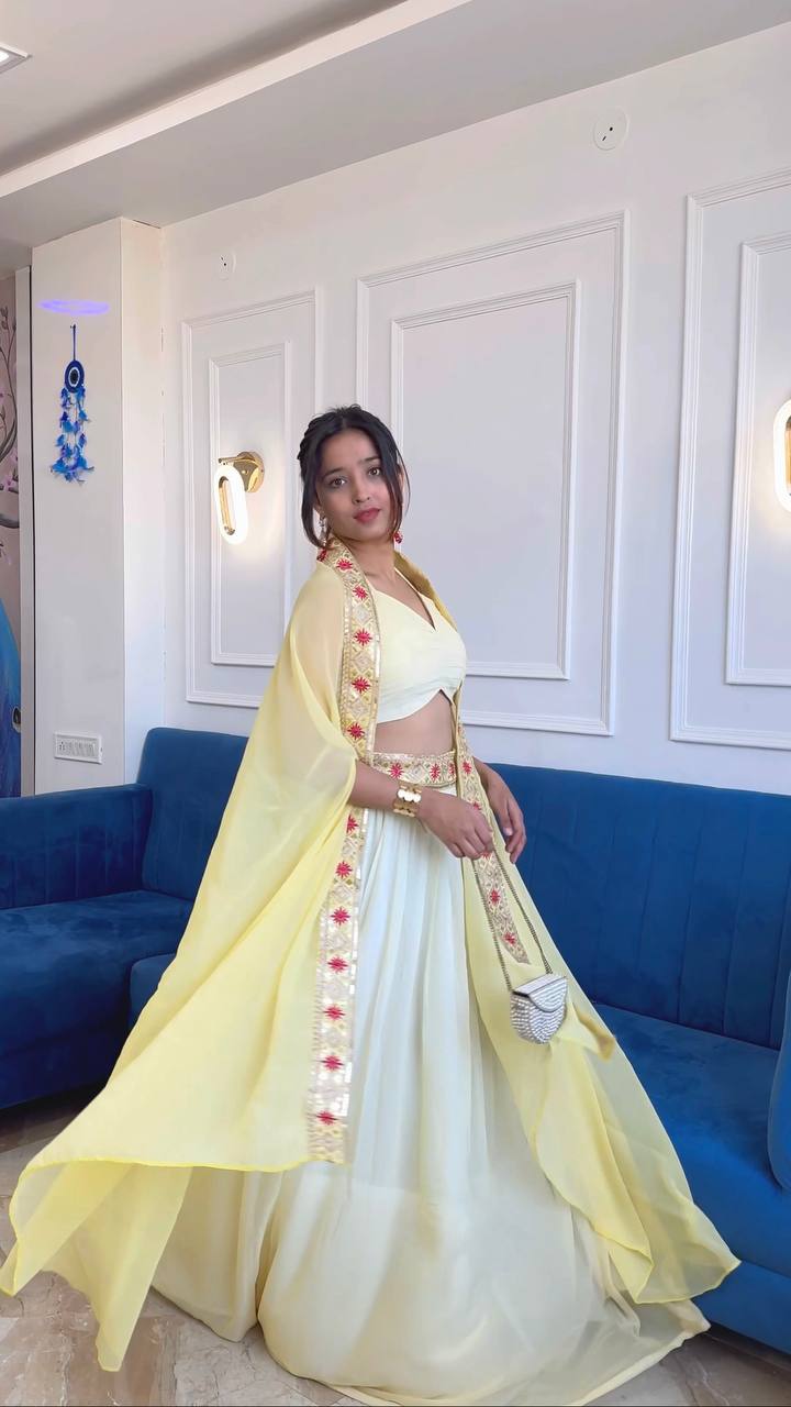 ⏭️ Georgette lehenga with thread , Dori & sequins work on waist border